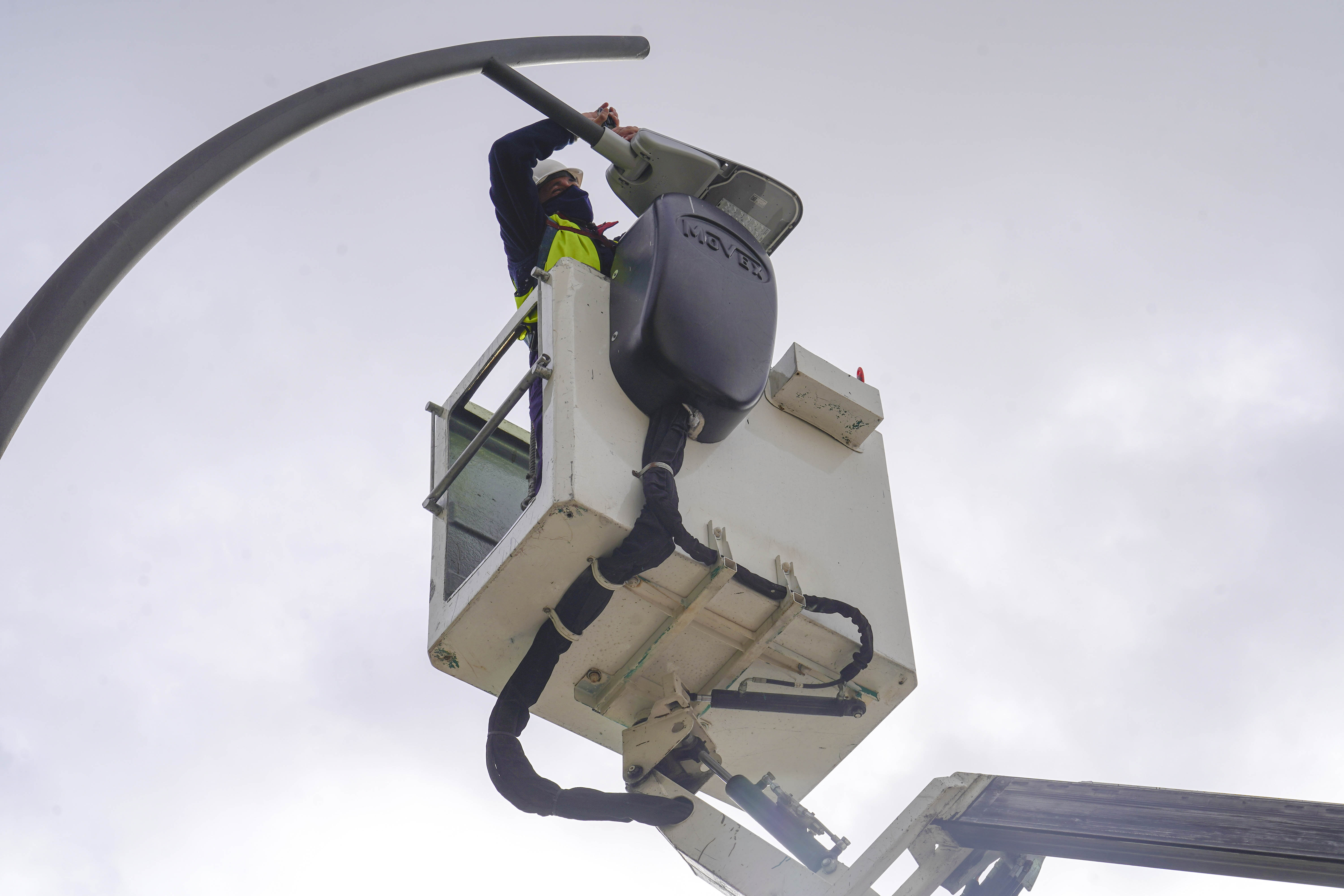 Imagen en alta resolución. Este enlace se abrirá mediante lightbox, puede haber un cambio de contextoEl Gobierno de Móstoles, formado por PSOE y Podemos, sigue trabajando para que todo el alumbrado de la ciudad sea de bajo consumo y menos contaminante. En total, la Concejalía de Mejora y Mantenimiento de los Espacios Públicos procederá a la sustitución de 1.656 luminarias de halogenuros metálicos y vapor de sodio por otras de led más ecológicas.