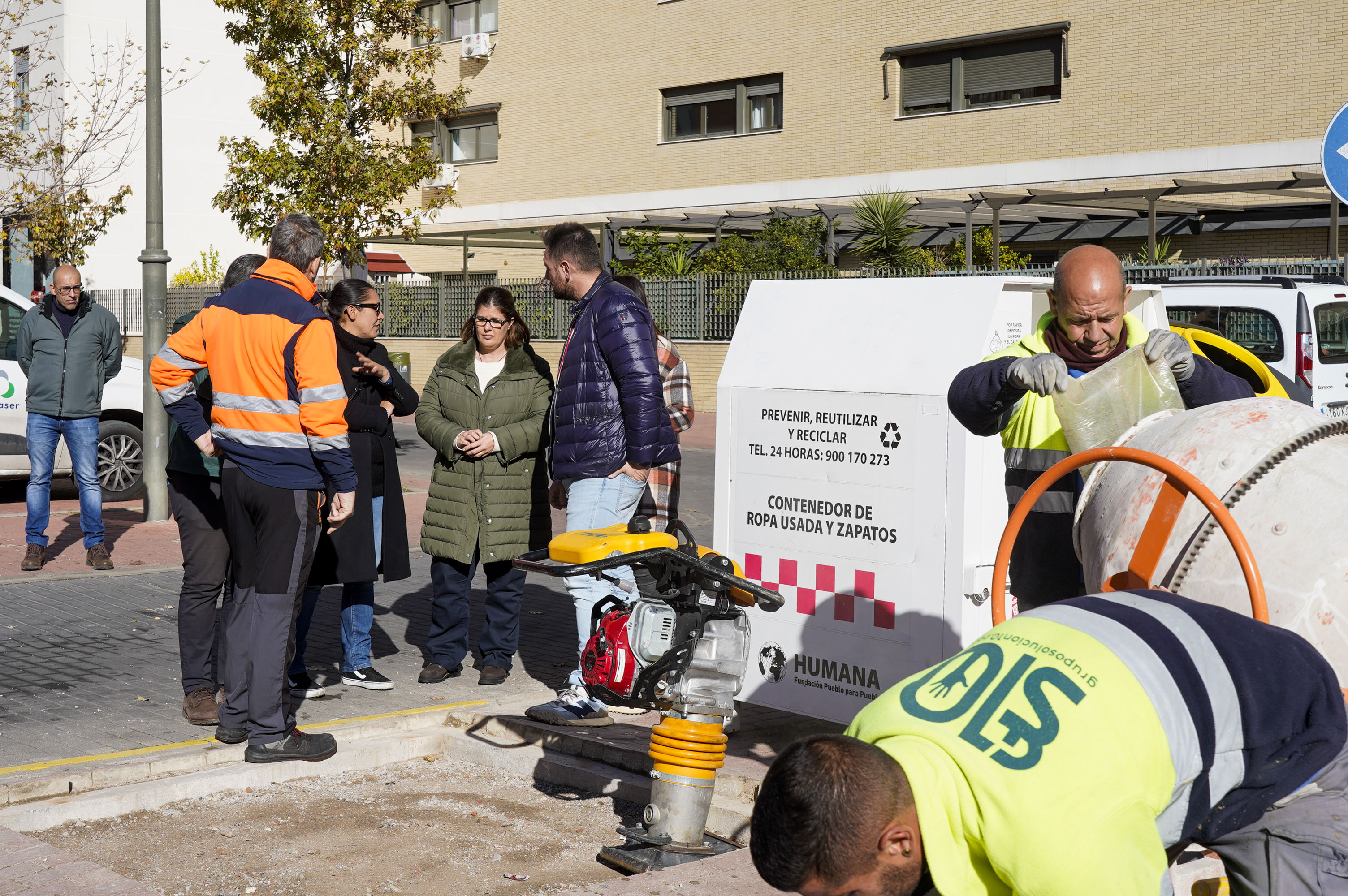La Alcaldesa, Noelia Posse, acompañada de la Concejala de Empleo y Nuevas Tecnologías, responsable del área de residuos, Rebeca Prieto, y el Concejal de Mejora y Mantenimiento de los Espacios Públicos, David Muñoz, ha visitado las obras que se han iniciado en el PAU-4. Tras la colocación de los nuevos contenedores, el espacio sobrante será reutilizado para la ampliación de la actual acera.