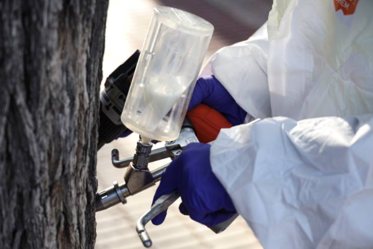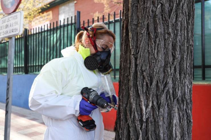 El tratamiento se realiza mediante endoterapia, una técnica más selectiva y más ecológica que consiste en inyectar los productos insecticidas directamente en el árbol, de manera que afecta solo a la galeruca que parasita sus hojas y no al resto de la fauna o flora.
