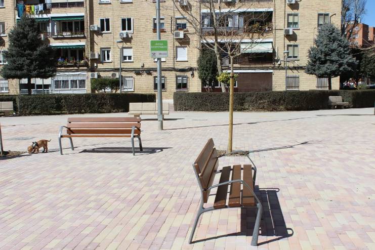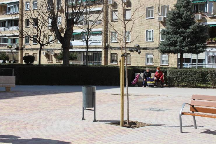 Asimismo, se ha procedido a la plantación de 9 árboles, la instalación de 6 bancos estanciales, manteniendo los bancos de hormigón perimetrales existentes y además está prevista la colocación de papeleras.