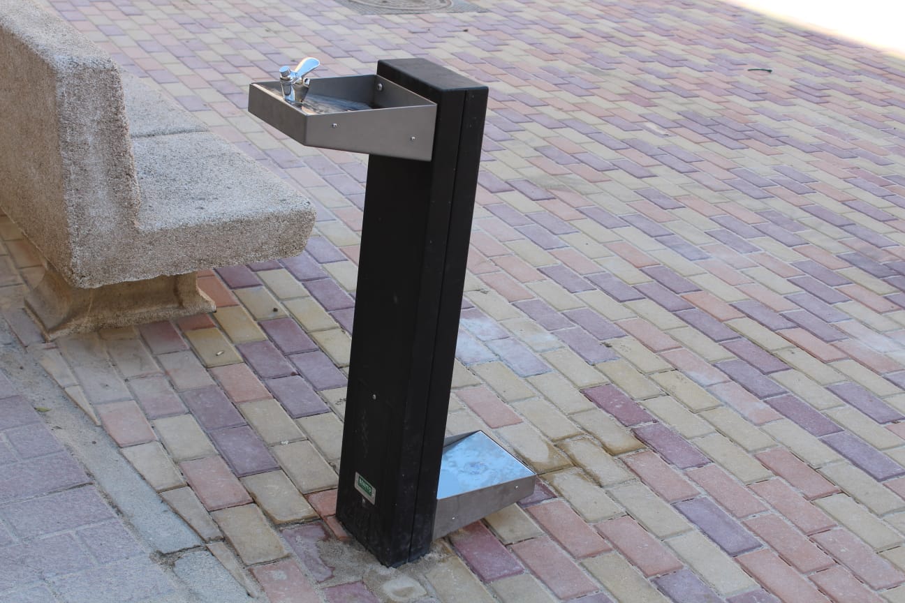 El suelo del área infantil ha sido acondicionado con pavimento de caucho para mayor seguridad de las niñas y los niños. También se ha colocado en el parque una fuente para uso de personas y mascotas.