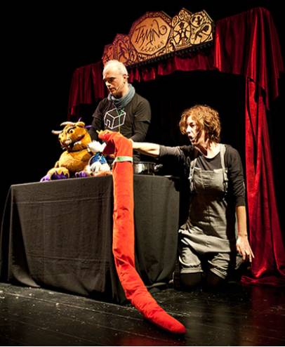 Espectáculo de títeres, cuentos y música donde todo se encuentra al descubierto dejando ver al espectador los secretos del teatro, desde cómo se manejan las marionetas hasta cómo se hace el sonido del viento, del agua, del barro y del trinar de los pájaros.