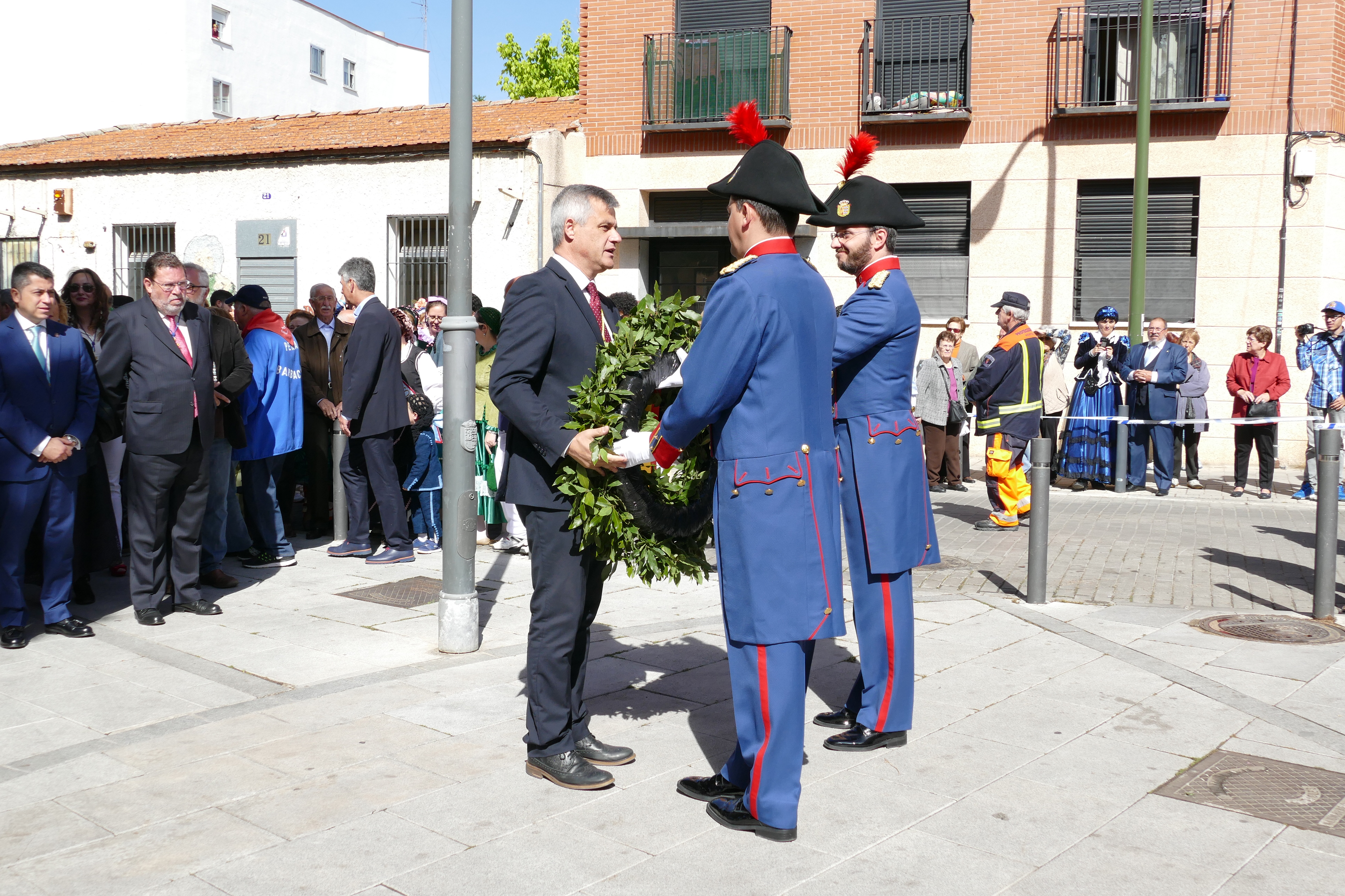 A continuación, tras el acto en la Parroquia de Nuestra Señora de la Asunción, la Corporación Municipal, acompañada por grupos de recreación histórica y de la Banda Municipal Juvenil, han recorrido las calles del centro hasta llegar a la casa donde vivió y murió Andrés Torrejón, lugar en el que el primer ediñ ha impuesto en la fachada de la vivienda una segunda corona de laurel, en homenaje al histórico alcalde mostoleño.