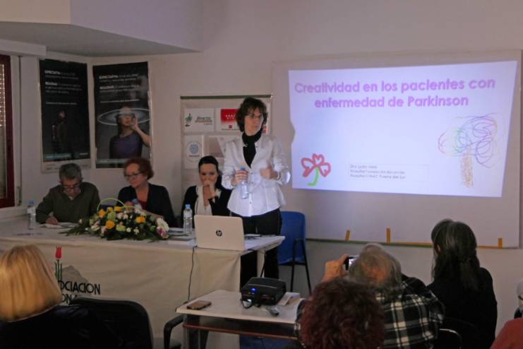 Imagen en alta resolución. Este enlace se abrirá mediante lightbox, puede haber un cambio de contextoLa Asociación Párkinson Móstoles organizó ayer en su sede (C/ Azorín, 32-34), una serie de charlas con motivo del Día Mundial de esta enfermedad que se celebra hoy 11 de abril. La doctora Lydia Vela, neuróloga del Hospital Universitario Fundación de Alcorcón impartió ayer la charla "Creatividad en los pacientes con enfermedad de Parkinson". La neuróloga del Centro Internacional de Neurología del Hospital HM Puerta del Sur, Carmen Gasca Salas, habló sobre el campo de las investigaciones que se están llevando a cabo sobre esta dolencia y Miguel Ángel Delgado , enfermero, máster en Urgencias, Emergencias y Catástrofes, habló sobre un aspecto importante como es la reanimación. En las charlas también estuvo presente la concejala de Igualdad, Sanidad y Mayores, Ana María Rodrigo.