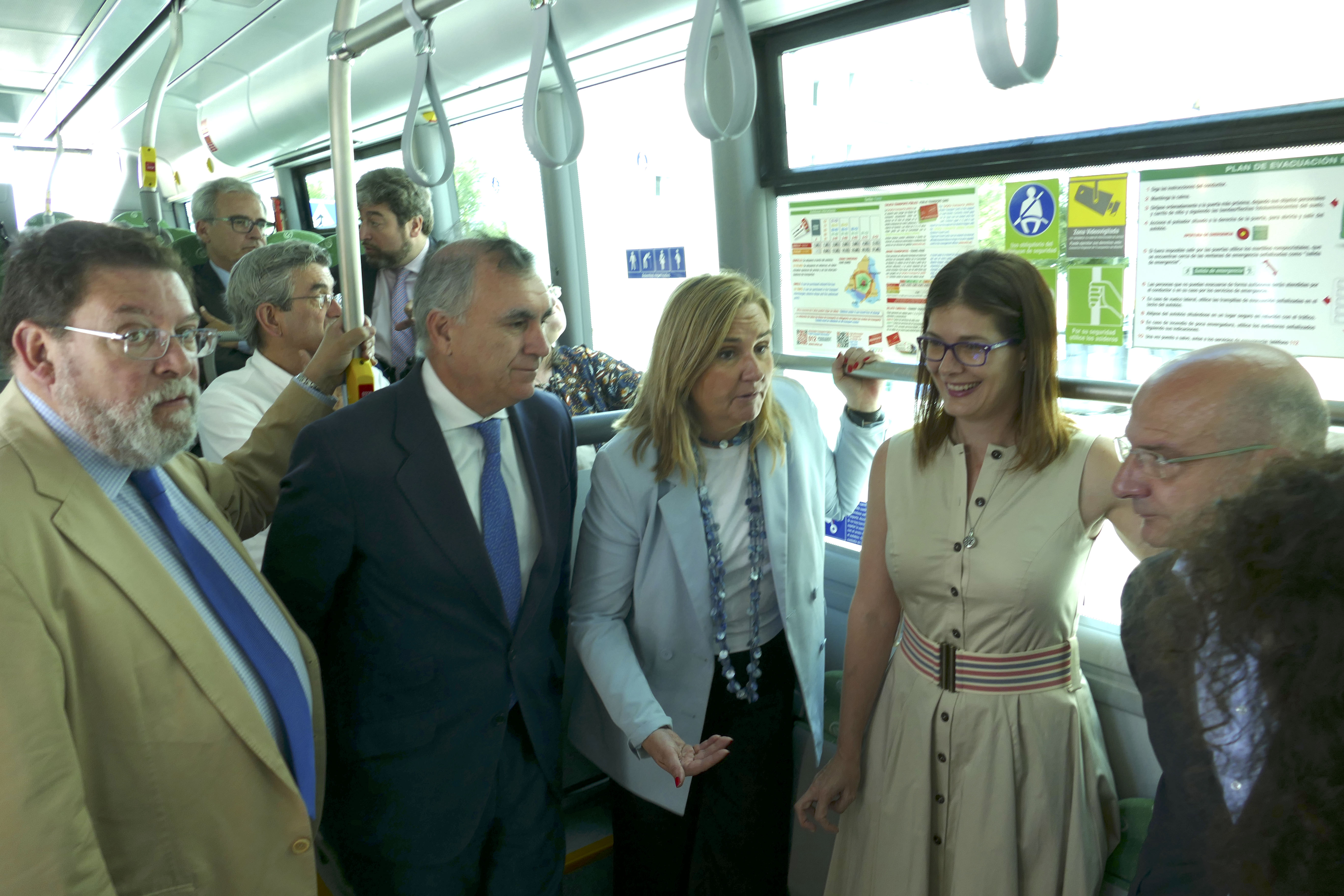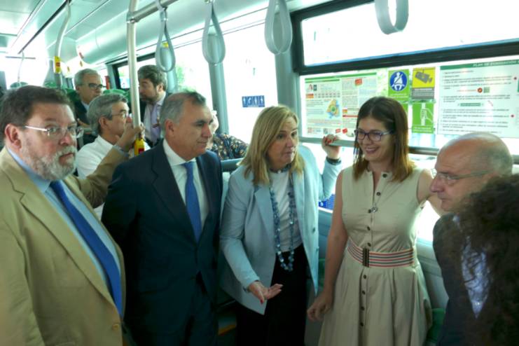 La Regidora y la Consejera han estado acompañadas por el concejal de Hacienda, Movilidad y Transporte, Javier Gómez; y por el Director Gerente del Consorcio Regional de Transportes, Alfonso Sánchez, junto a los que han recorrido parte del trayecto que realizará dicho autobús por la ciudad con cabecera en el barrio de Móstoles Sur hasta llegar al intercambiador de Príncipe Pío.