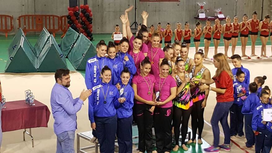 Imagen en alta resolución. Este enlace se abrirá mediante lightbox, puede haber un cambio de contextoUn fin de semana más el Club Gimnasia Ciudad de Móstoles se cuelga medallas en los campeonatos a los que asiste. El sábado 13 de mayo los conjuntos juveniles hicieron pleno en el Trofeo de Valdemoro. Ambos subieron al pódium en sus respectivas categorías; Juvenil M (3er clasificado) y Juvenil R (1er clasificado).