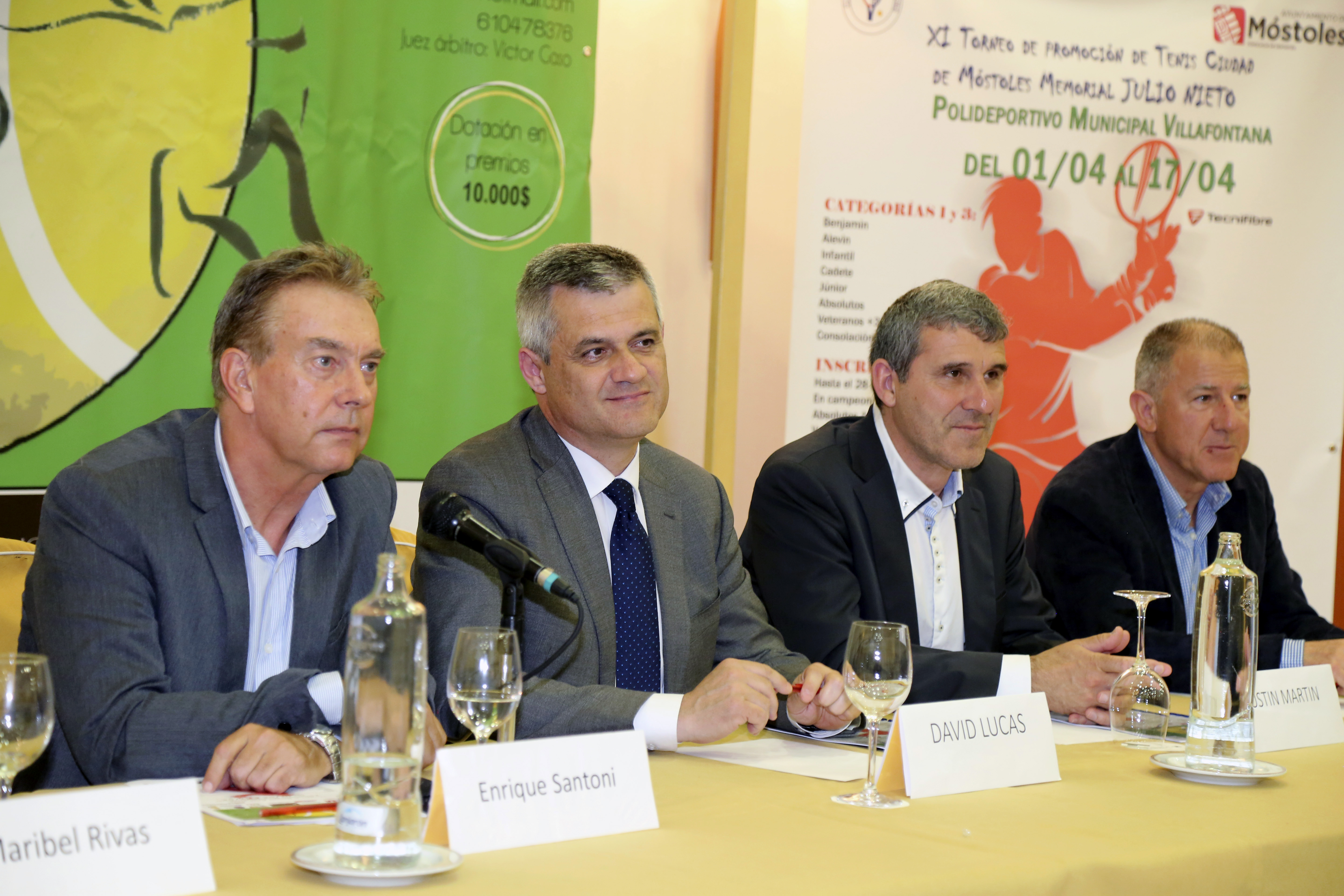 Presentacion Torneo Tenis memorial Julio Nieto 1Imagen en alta resolución. Este enlace se abrirá mediante lightbox, puede haber un cambio de contextoPresentacion Torneo Tenis memorial Julio Nieto 1La ciudad de Móstoles será sede, durante el mes de abril, de tres grandes eventos tenísticos organizados por el Club Móstoles Tenis, en colaboración con la concejalía de Cultura y Deportes del Ayuntamiento de Móstoles: El XI Torneo de Promoción del Tenis Ciudad de Móstoles Memorial Julio Nieto, el III Torneo Internacional Ciudad de Móstoles y el V Open Nacional de Tenis en Silla de Ruedas. Los tres torneos se disputarán en el Polideportivo Municipal de Villafontana, entre el 1 de abril y el 1 de mayo.