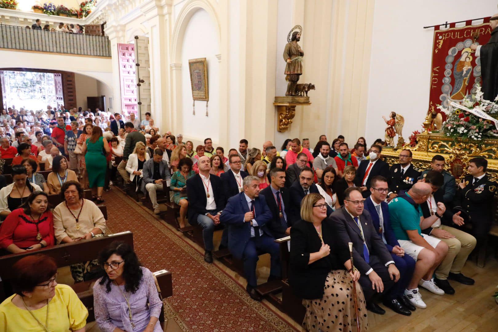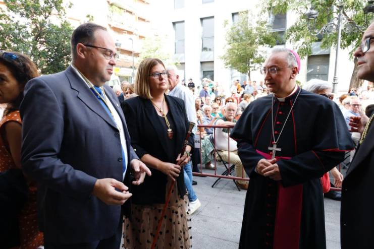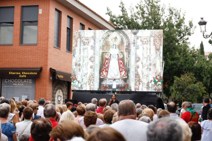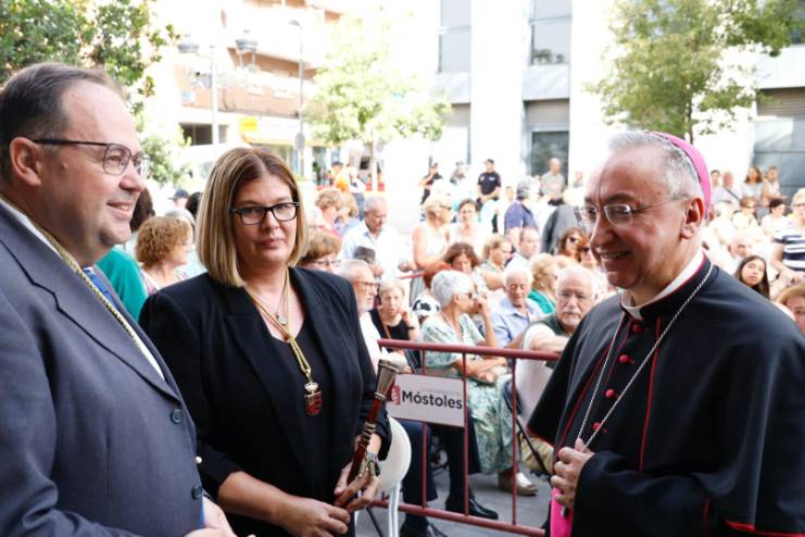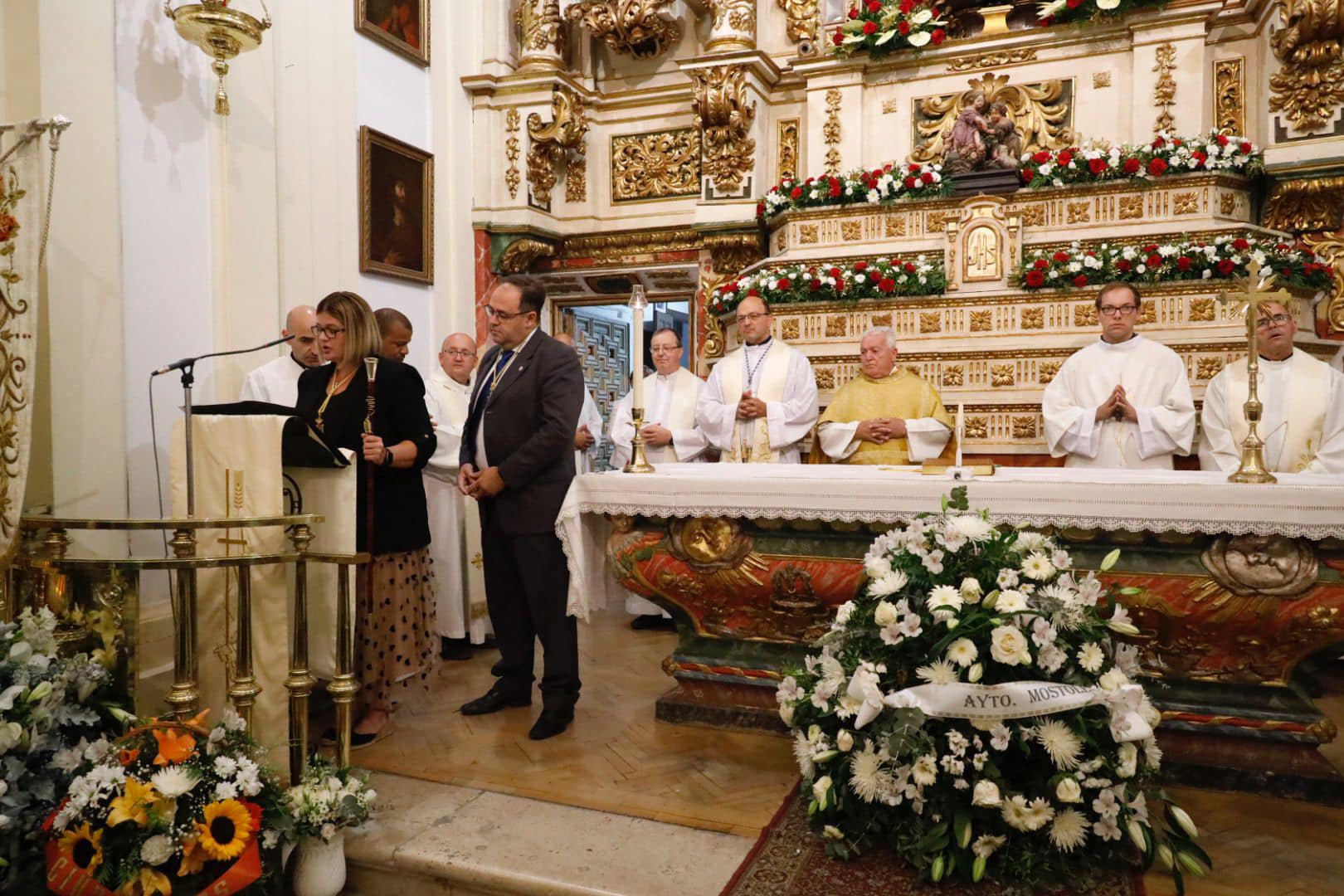 Tras un voto de alabanza y dedicación, la Alcaldesa de Móstoles entregó el bastón de mando a la Virgen de Nuestra Señora de los Santos, antes de la misa solemne que, un año más, congregó a centenares de fieles en torno a la ermita en el día grande de nuestras fiestas patronales.