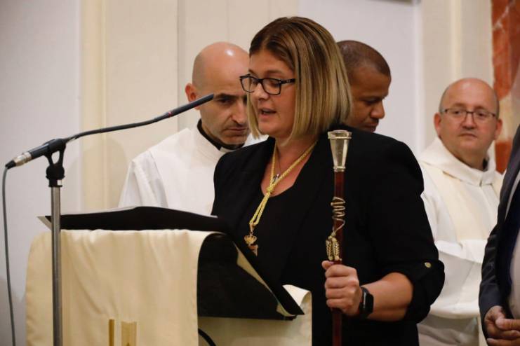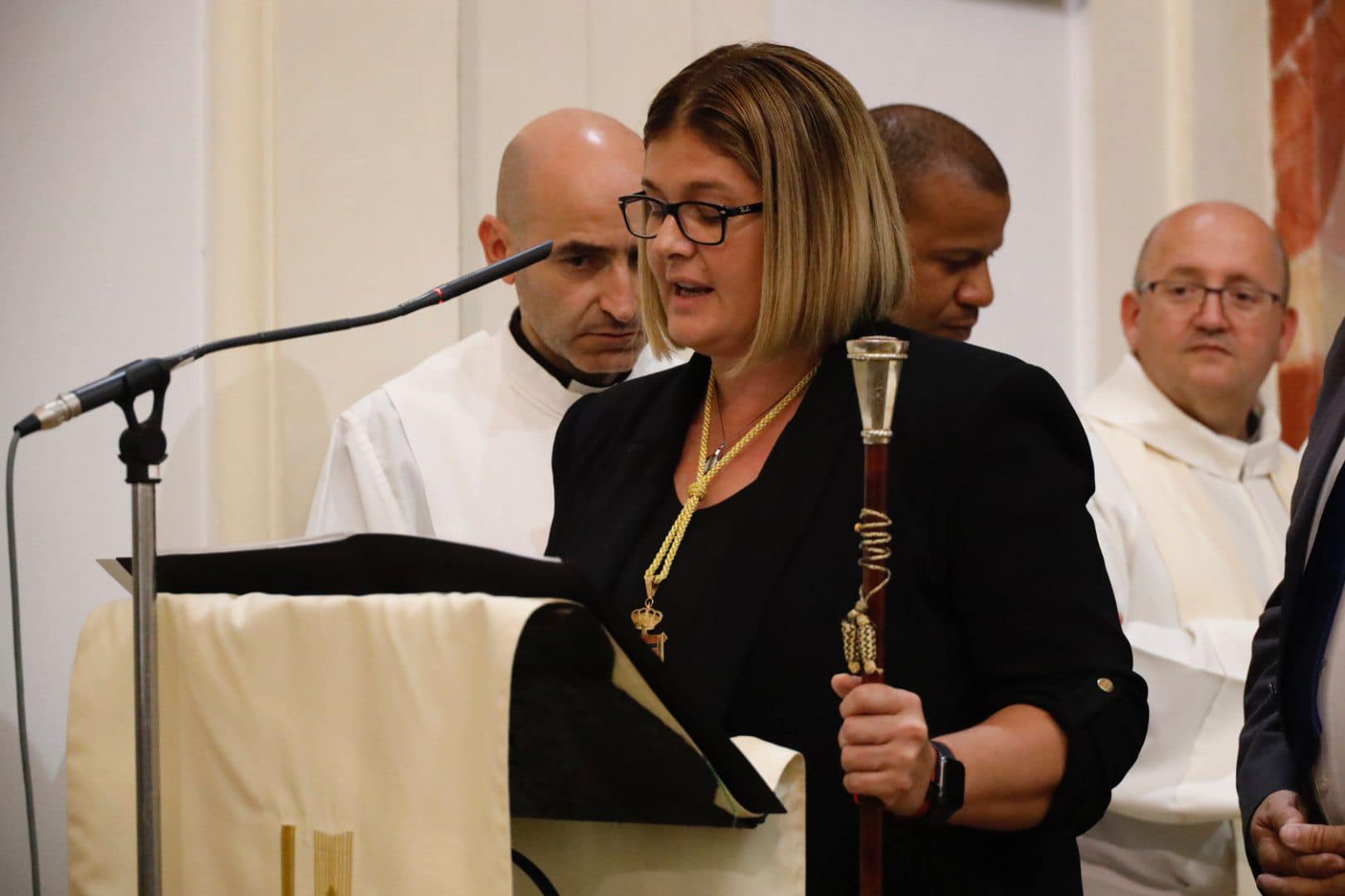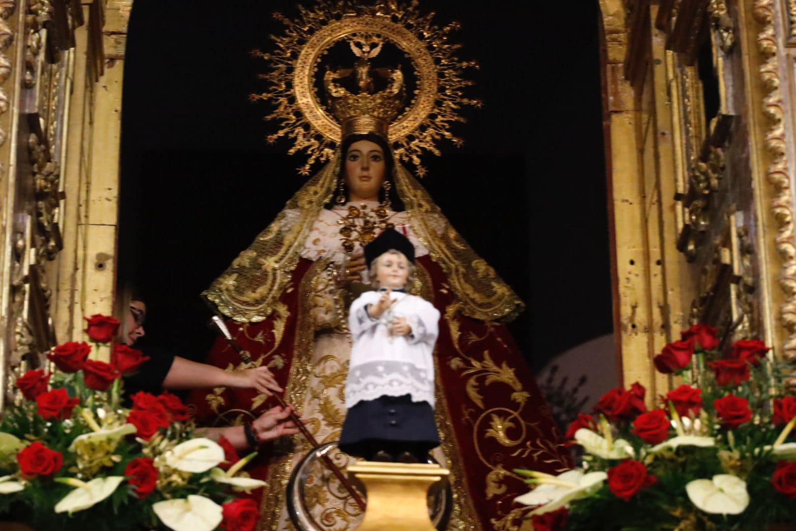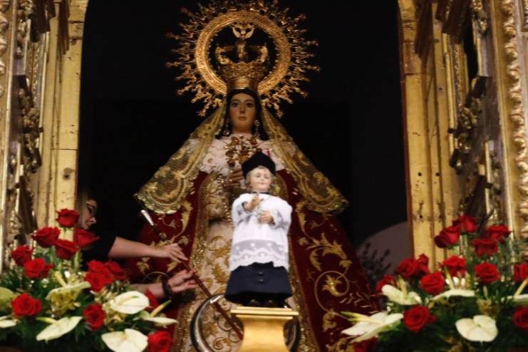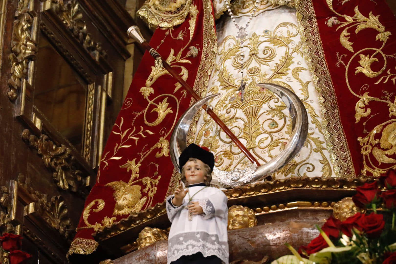 Tras un voto de alabanza y dedicación, la Alcaldesa de Móstoles entregó el bastón de mando a la Virgen de Nuestra Señora de los Santos, antes de la misa solemne que, un año más, congregó a centenares de fieles en torno a la ermita en el día grande de nuestras fiestas patronales.