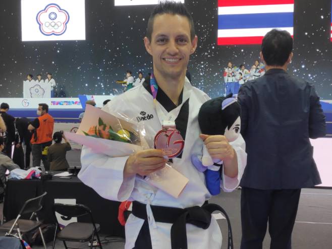 Imagen en alta resolución. Este enlace se abrirá mediante lightbox, puede haber un cambio de contextoEl Campeonato Mundial de taekwondo celebrado en Goyang (Corea del Sur), fue casi inmejorable para los mostoleños Ainhoa Delgado y Ramón López. El segundo día de la competición Ramón consiguió el bronce en la categoría de sincronizado masculino.
