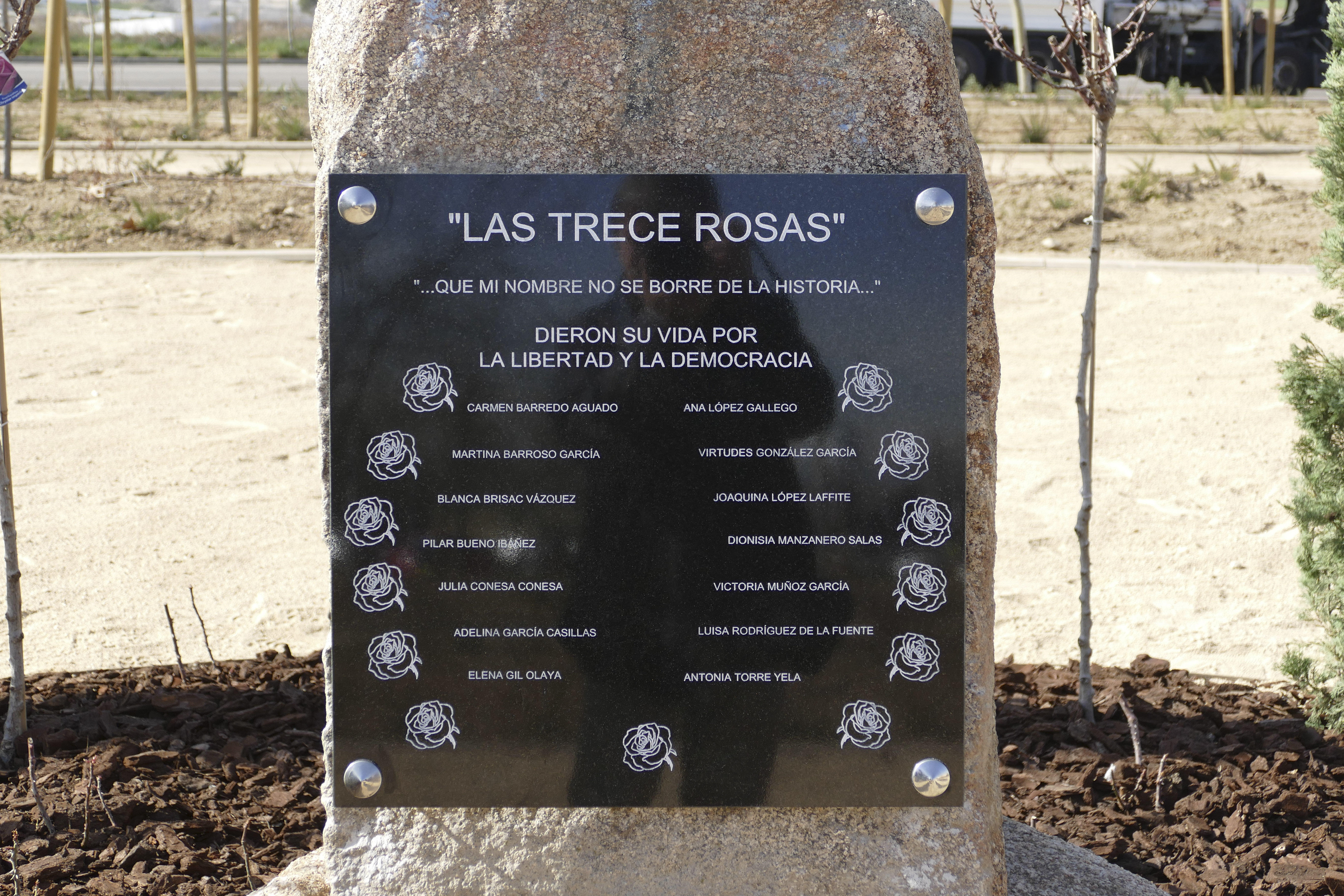 • En el mismo se ha colocado un monolito con una placa en la que figuran los nombre de "Las Treces Rosas", mujeres que dieron su vida por la libertad y la democracia.