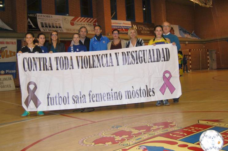 Niñas y chicas de las categorías alevín, infantil, cadete y juvenil de la A.D. Alcorcón y del F.S.F. Móstoles jugaron sus respectivos partidos con el objetivo de visibilizar el fútbol femenino. Posteriormente las capitanas del equipo mostoleño, Inma y Celia, reclamaron mediante la lectura de un manifiesto su derecho a disfrutar de las mismas oportunidades que los varones y a vivir una vida libre de violencia y discriminación.