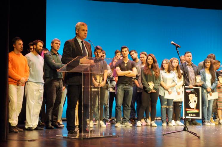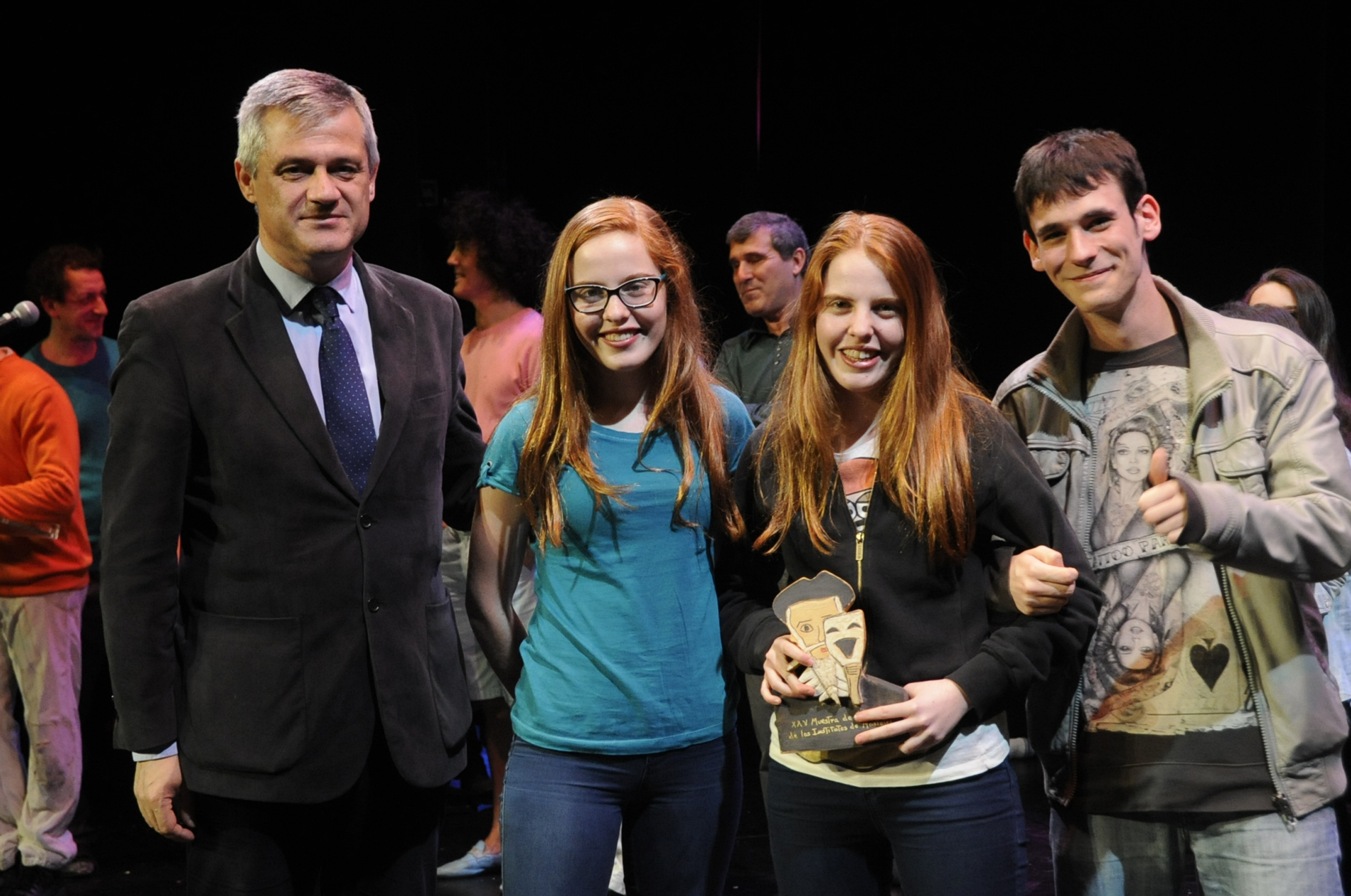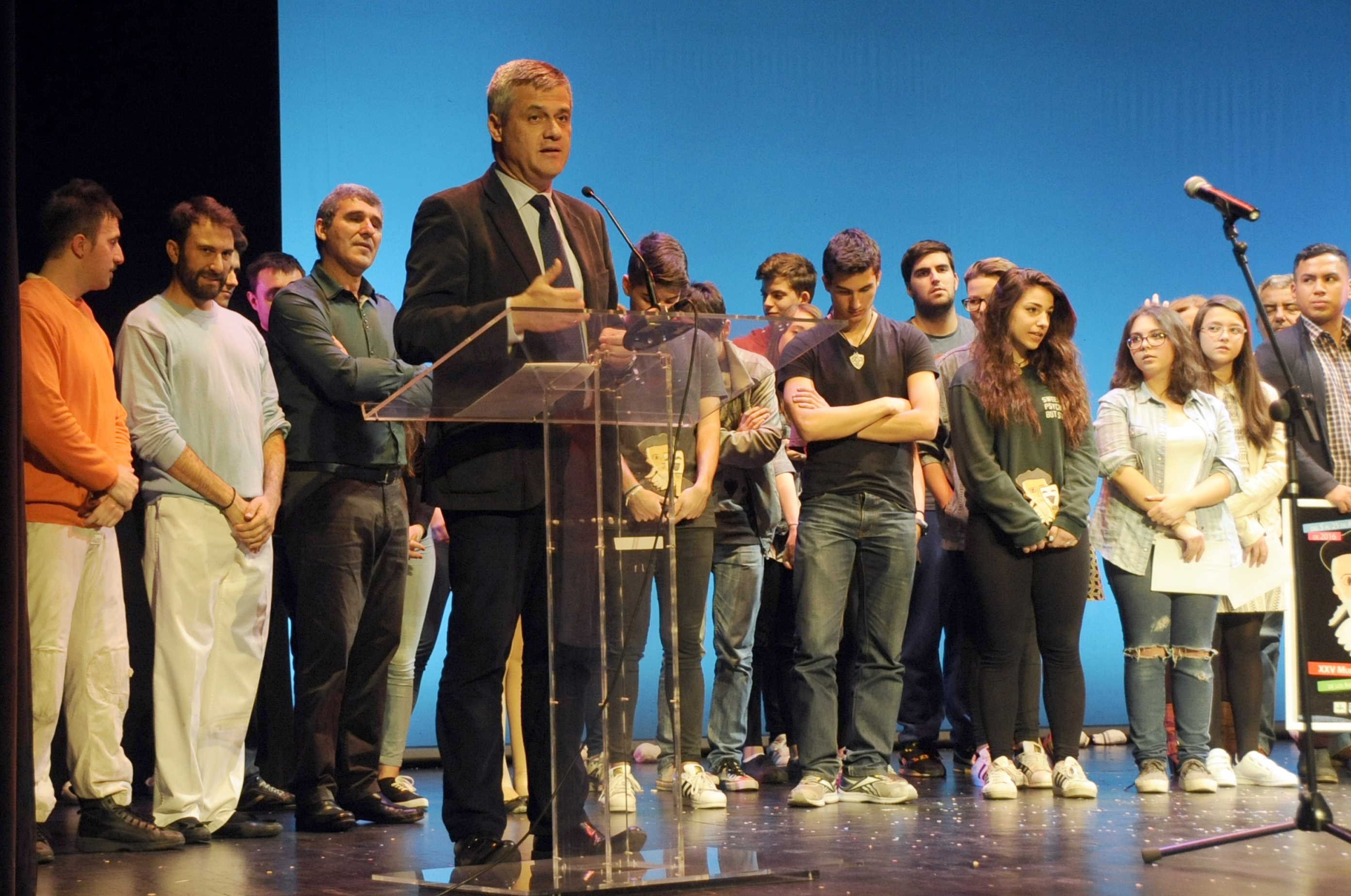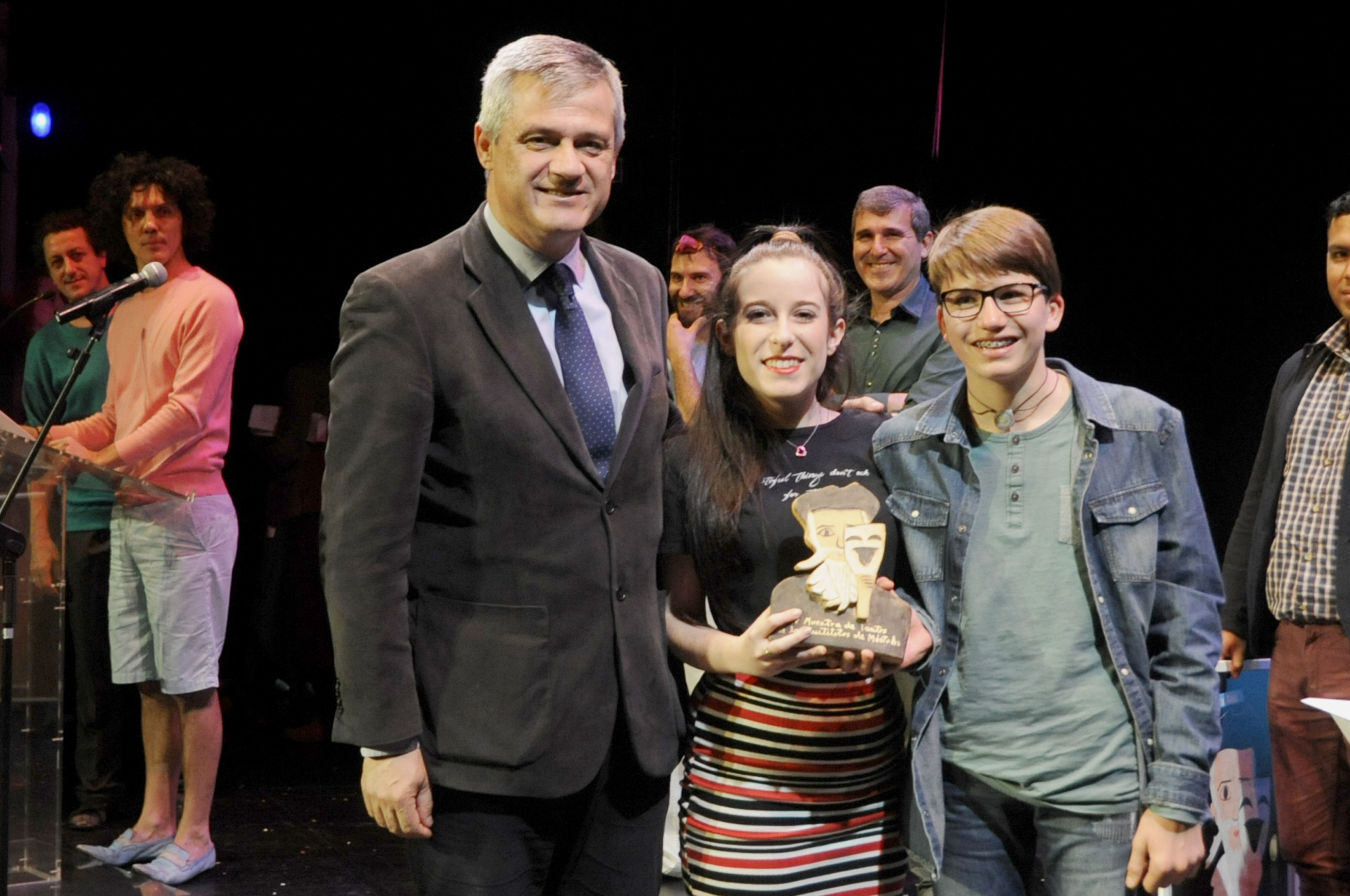 Imagen en alta resolución. Este enlace se abrirá mediante lightbox, puede haber un cambio de contextoEl alcalde de Móstoles, David Lucas, y el concejal de Cultura y Deportes, Agustín Martín, han clausurado esta mañana en el Teatro del Bosque la XXV Muestra de Teatro de los Institutos de Móstoles. Durante la celebración del acto hicieron entrega de las placas conmemorativas a los institutos participantes y los premios a los diseñadores de los carteles de la Muestra.