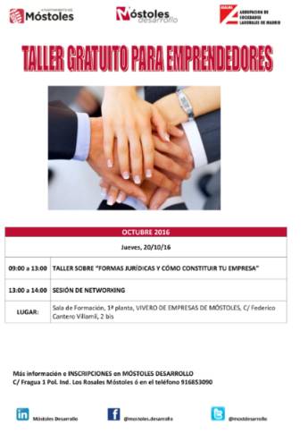 Imagen en alta resolución. Este enlace se abrirá mediante lightbox, puede haber un cambio de contextoEl Vivero de Empresas de Móstoles acogerá, el próximo jueves 20 de octubre, el Taller gratuito "Formas jurídicas y cómo construir tu empresa", de 9 a 13 horas, y posteriormente la "Sesión de Networking", de 13 a 14 horas. Los interesados pueden inscribirseen el Área de Empresas y Emprendedores de Móstoles Desarrollo, sito en C/ Fragua 1, Pol. Ind. Los Rosales de Móstoles.