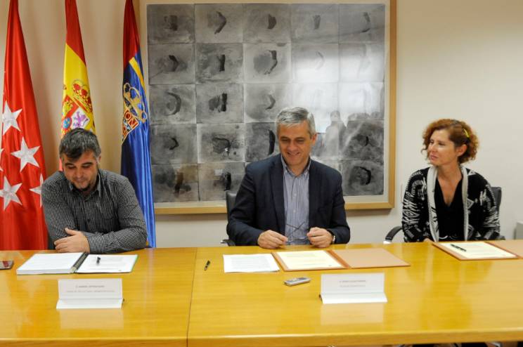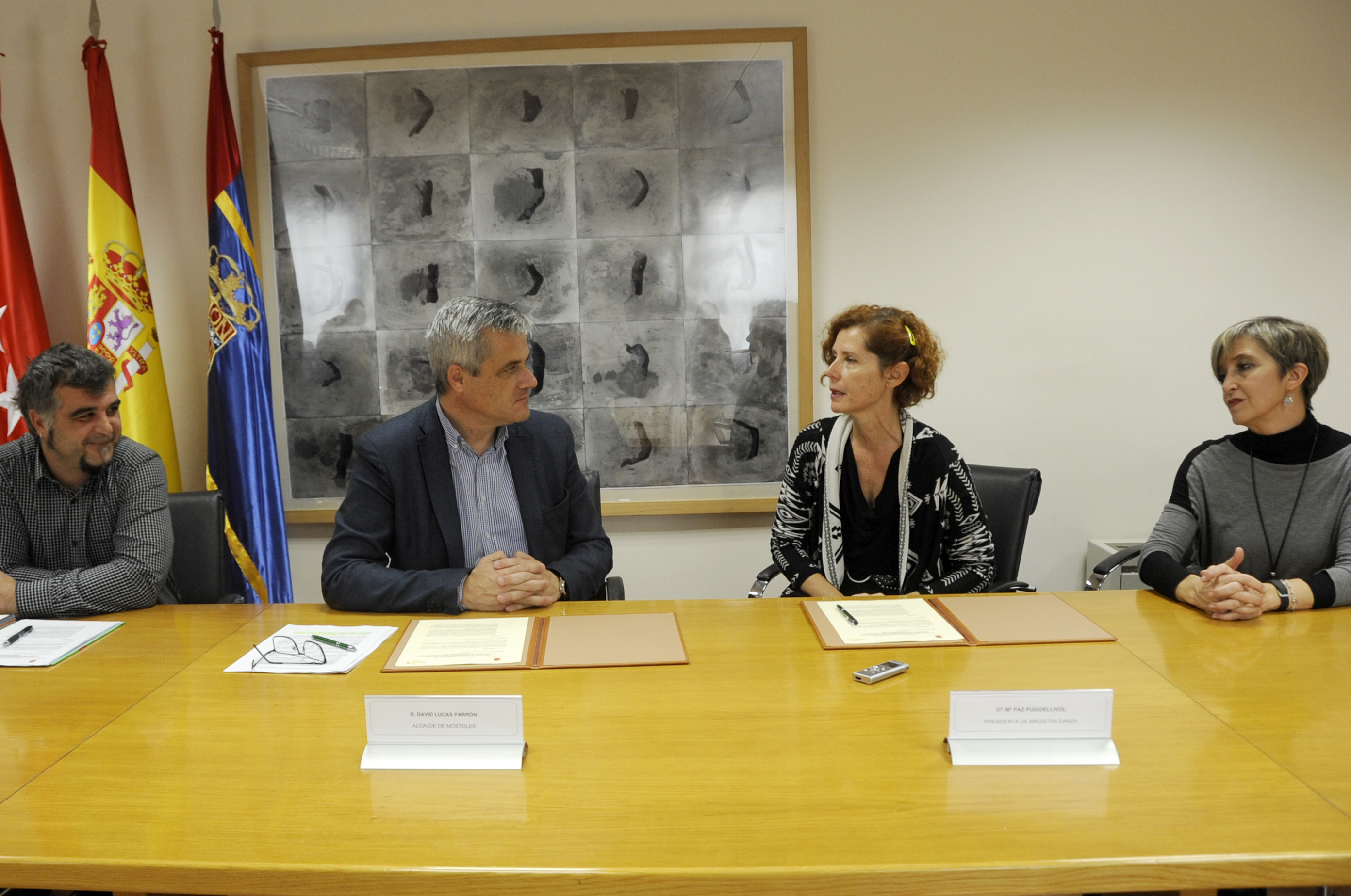 Imagen en alta resolución. Este enlace se abrirá mediante lightbox, puede haber un cambio de contextoEl alcalde de Móstoles, David Lucas, y la presidenta de Magistra Danza, Asociación de Profesores del Real Conservatorio Profesional de Danza Mariemma, Mª Paz Puigdellivol, junto al concejal de Cultura y Bienestar Social, Gabriel Ortega, firmaron esta mañana un convenio que tiene por objetivo impulsar en el municipio la libre creación y representación de la danza en todas sus variedades, y actuando en interés de la promoción de la ciudad a nivel nacional.