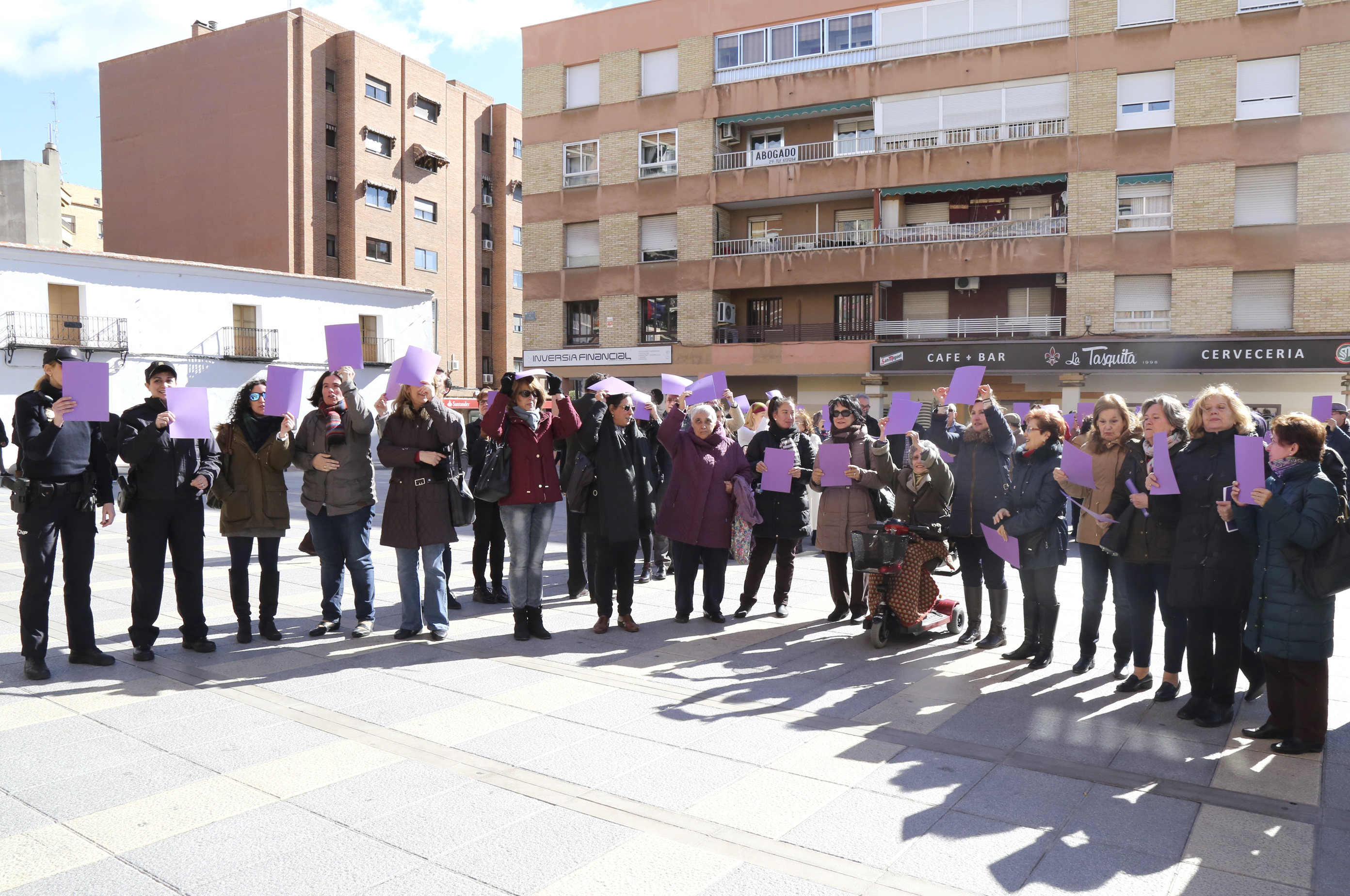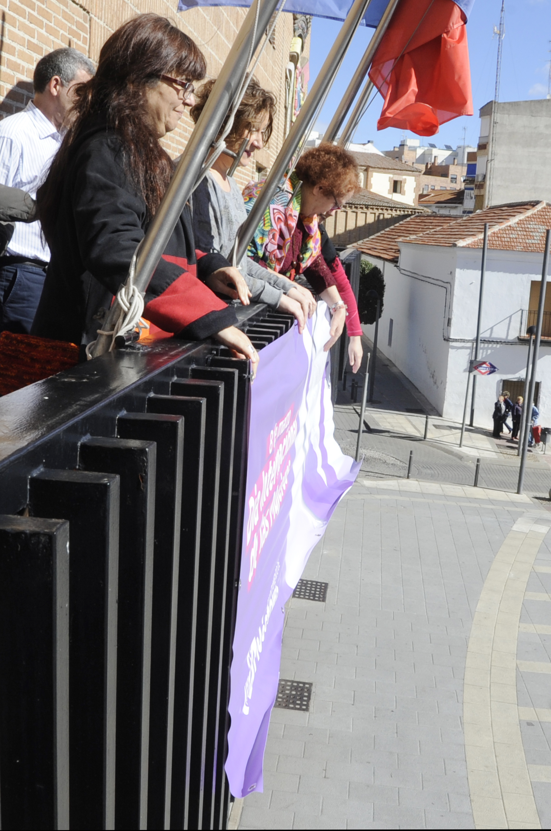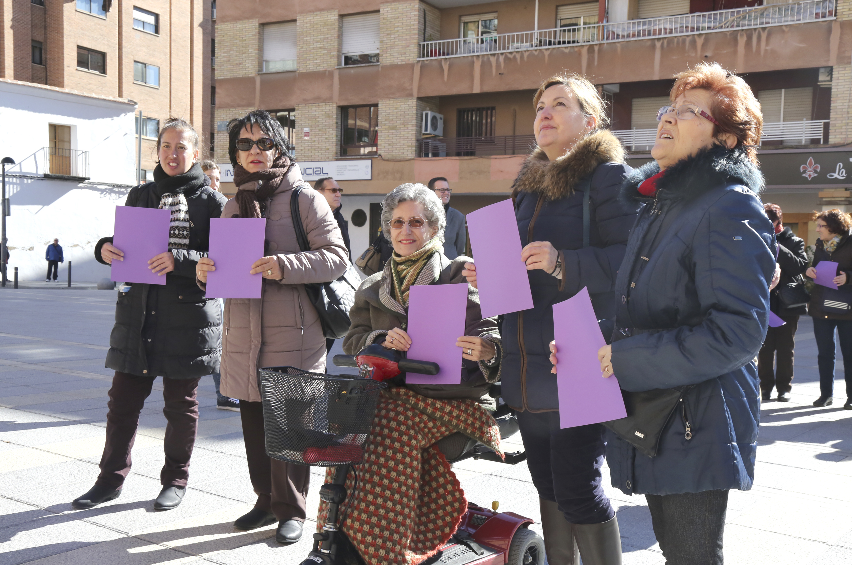 Esta mañana, además, se ha descolgado una pancarta en el balcón de la casa consistorial y se ha creado, con la participación de mujeres, el símbolo de infinito con cartulinas de colores, ocupando parte de la plaza del Ayuntamiento.
