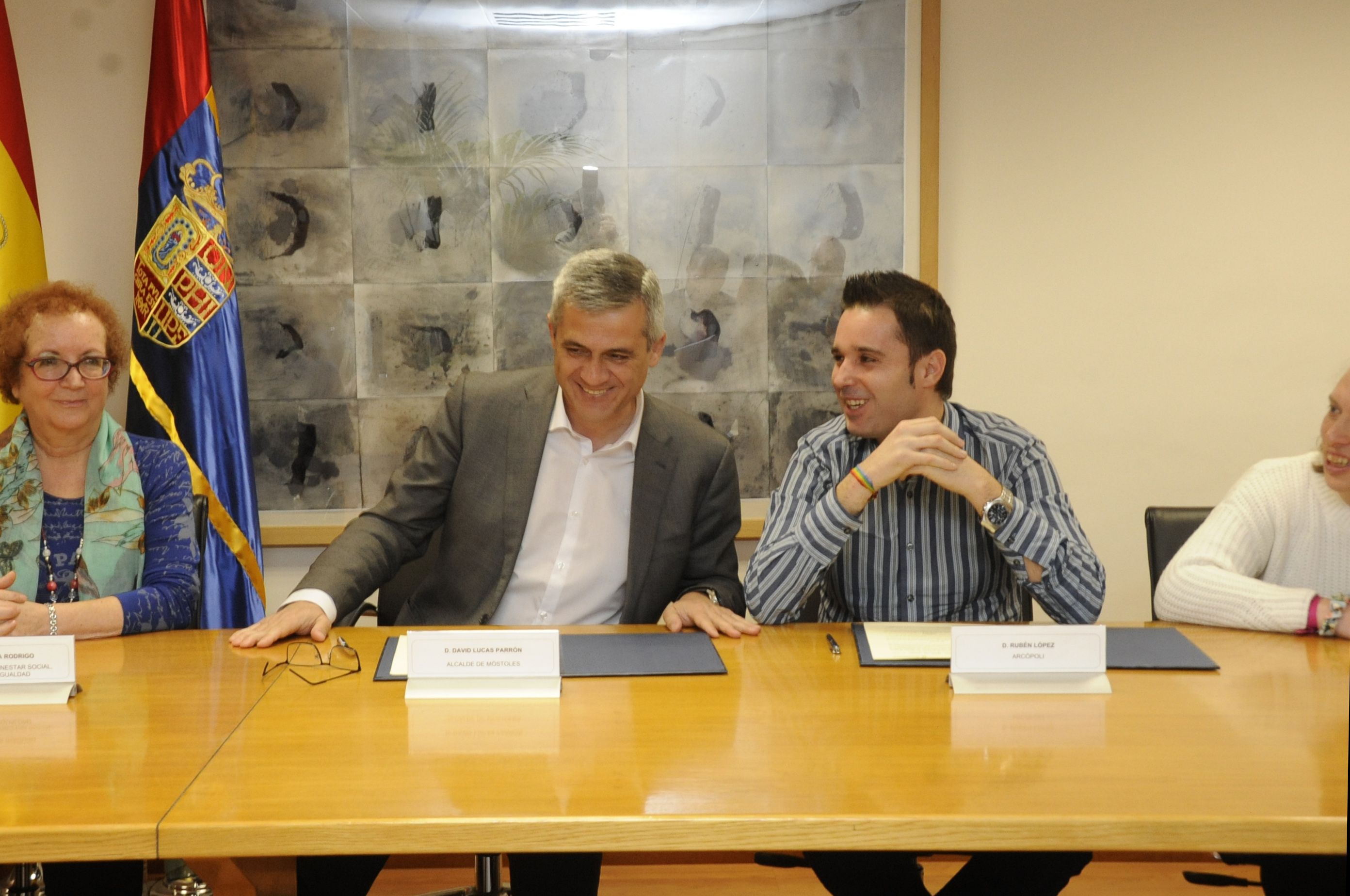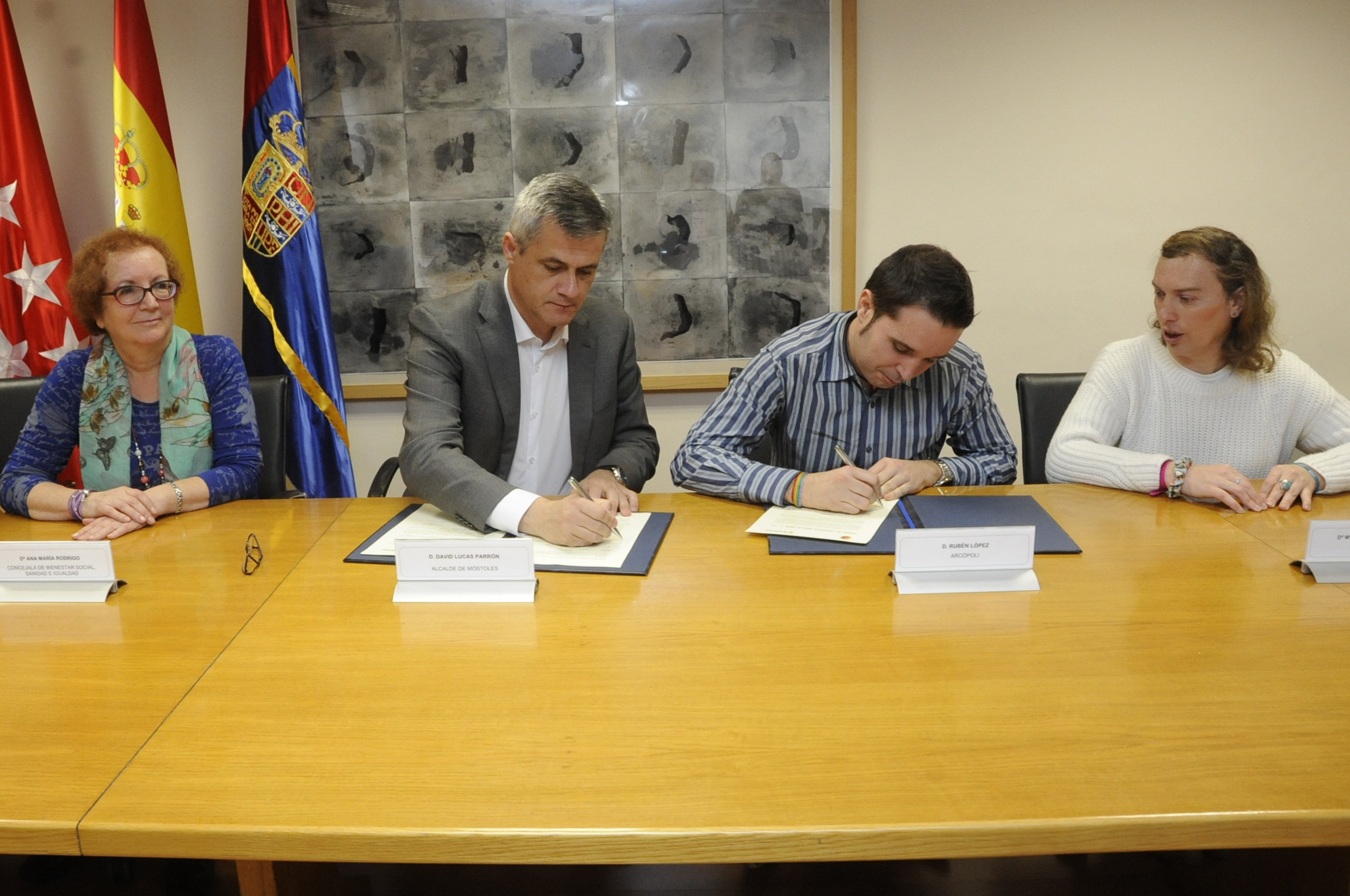 El convenio que se ha rubricado tiene vigencia hasta el 31 de diciembre de este año y se podrá prorrogar anualmente hasta un máximo de tres años. Durante la jornada se ha contado también con la presencia de la concejala de Bienestar Social, Sanidad e Igualdad, Ana María Rodrigo, la edil de Educación y Juventud, Aránzazu Fernández, el portavoz de Ganar Móstoles, Gabriel Ortega, y los miembros de la asociación Arcópoli, Alejandra Huertas y Ramón Martínez
