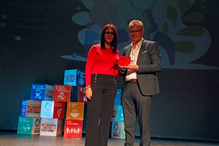 La Concejala de Presidencia, Rebeca Prieto, entregó la mención de honor a la empresa sostenible y socialmente responsable a Supracafé. Recoge el premio Ricardo Oteros. |