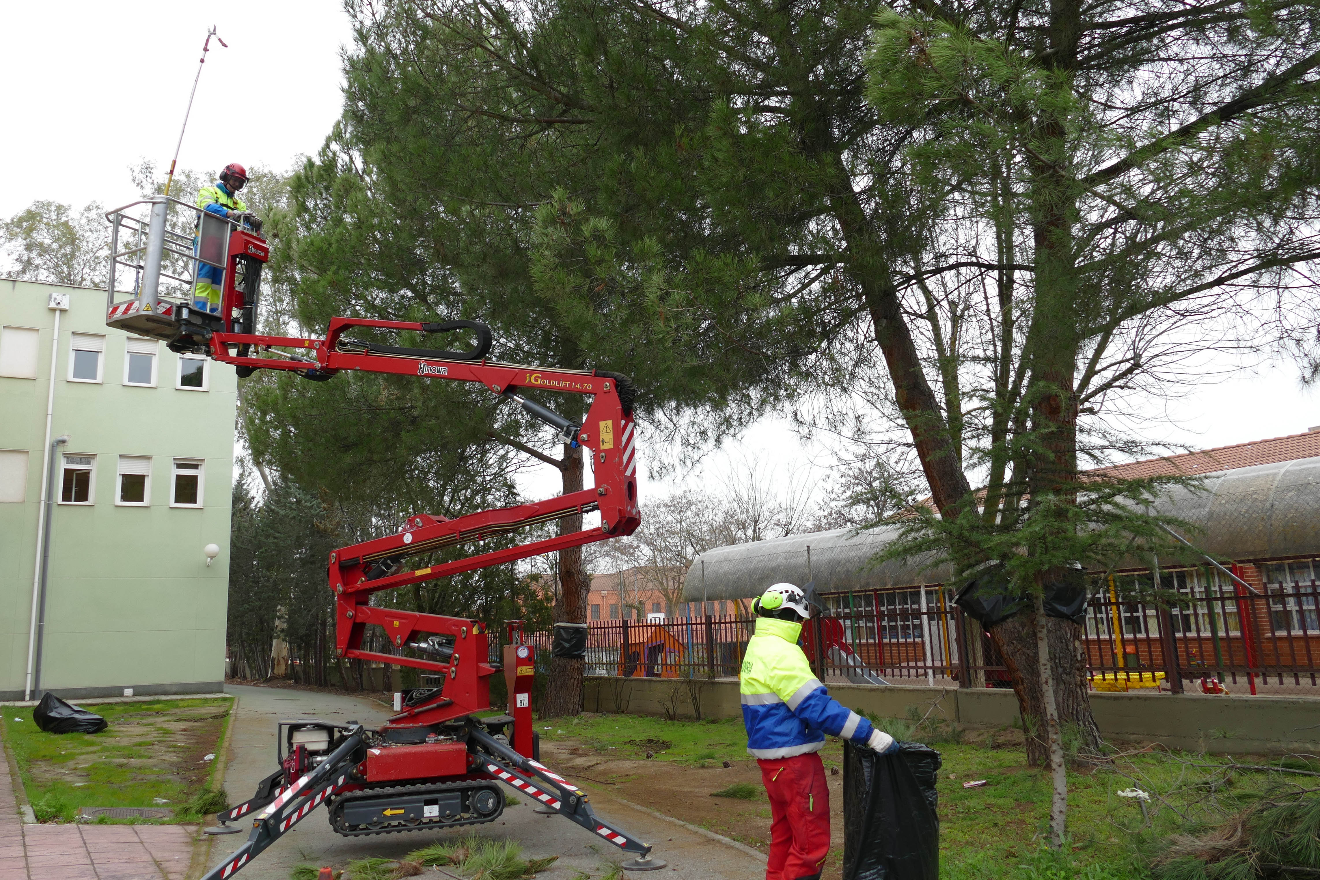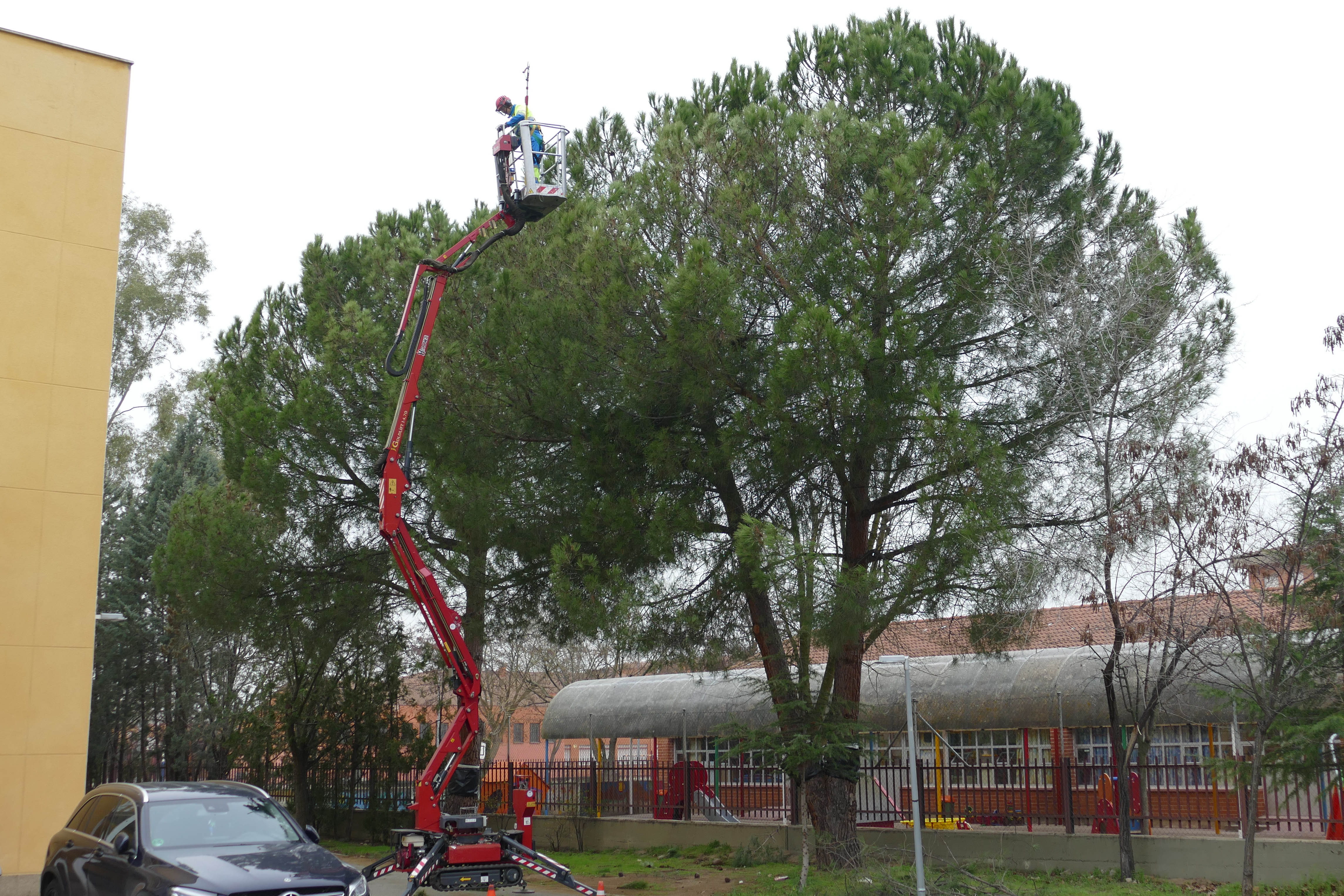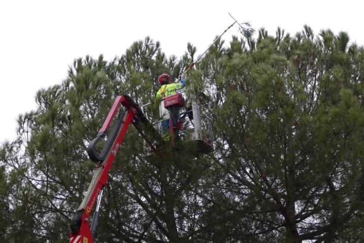 Imagen en alta resolución. Este enlace se abrirá mediante lightbox, puede haber un cambio de contextoEl Ayuntamiento de Móstoles ha empezado a eliminar algunos nidos de oruga procesionaria que han aparecido en varios árboles de la ciudad. Esta plaga afecta sobre todo a pinos y cedros. Son las primeras colonias que se detectan este año. La presencia de este tipo de oruga suele registrarse en el mes de abril, pero el cambio climático ha adelantado el ciclo de desarrollo de este insecto.