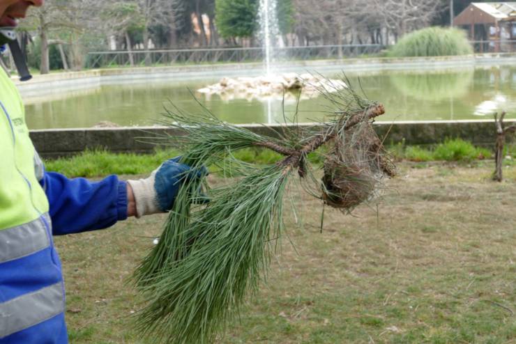 Desde el pasado miércoles 12 de febrero se están eliminando también físicamente nidos de oruga procesionaria en algunas zonas arboladas de la ciudad como el parque Finca Liana. Desde hace varias semanas se están aplicando ya tratamientos preventivos en todos los pinos y cedros en suelo público. El Servicio Municipal de Parques y Jardines lleva a cabo anualmente sucesivas campañas para controlar su proliferación, aunque ningún método asegura su eliminación al 100%.