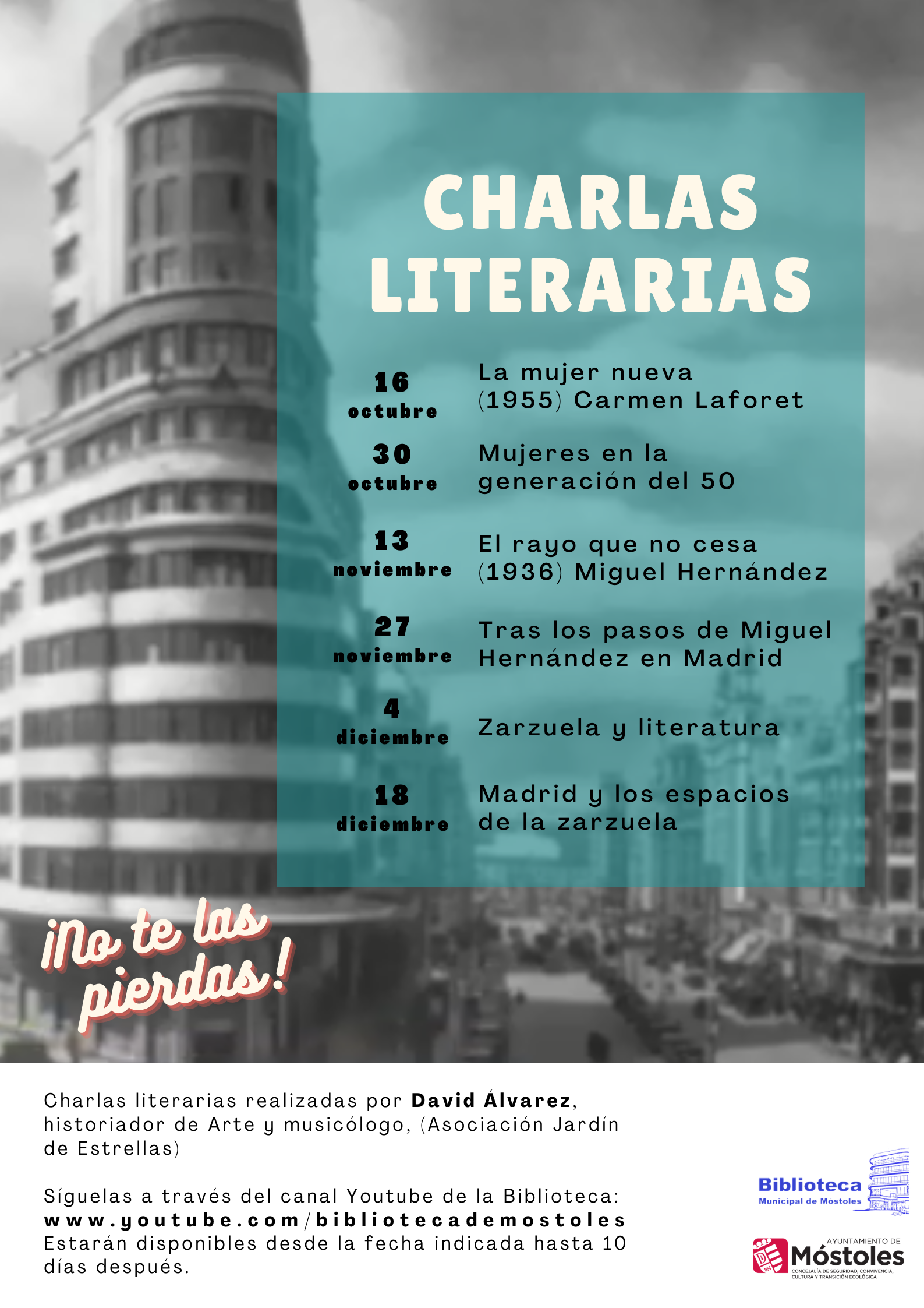 Asimismo, se inician los Clubes de Lectura de la Biblioteca Municipal, que son lugares de encuentro en torno al libro y a la lectura. La Biblioteca dispone de 3 grupos de clubes de lectura en horario de mañana o de tarde. El coordinador de los grupos es el escritor Guillermo Roz. Se desarrollarán en formato on line en horario de mañana: de 11:30 a 13:30 h y de tarde: de 18 a 20 h. Inscripción previa. Para más información contactar con extensionbibliotecaria@mostoles.es
