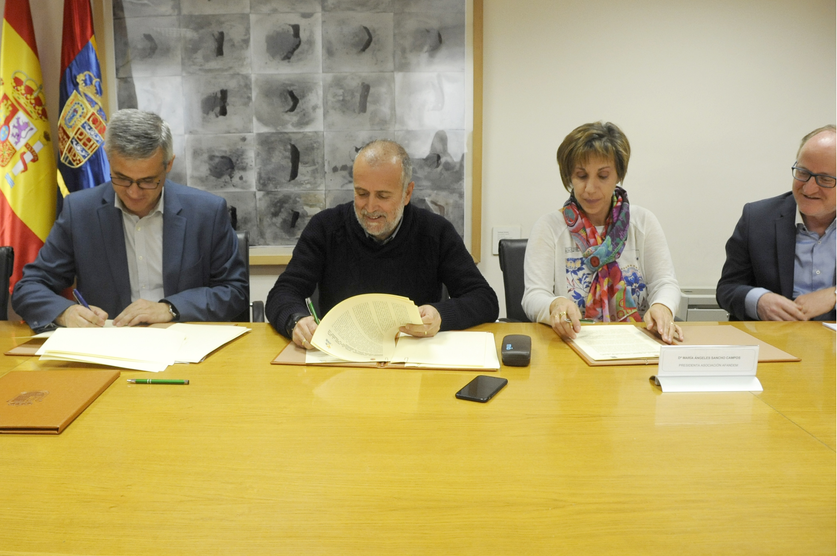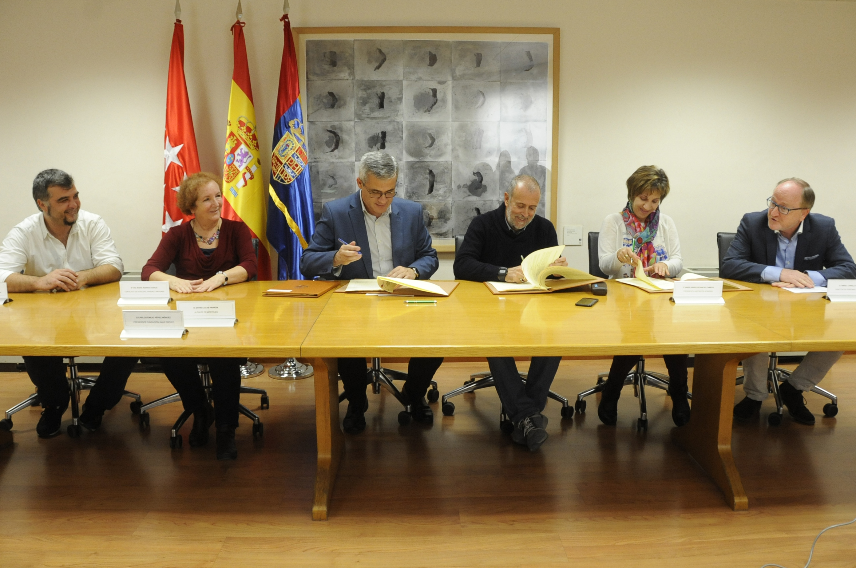 Convenio AFANDEM - AMÁS 1Imagen en alta resolución. Este enlace se abrirá mediante lightbox, puede haber un cambio de contextoConvenio AFANDEM - AMÁS 1El alcalde de Móstoles, David Lucas, el presidente del Grupo AMÁS, Carlos Pérez, y la presidenta de la Asociación AFANDEM, Mª Ángeles Sancho, han firmado esta mañana cuatro convenios de colaboración entre el Ayuntamiento y ambas asociaciones. En el acto estuvieron también presentes la concejala de Igualdad, Sanidad y Mayores, Ana Mª Rodrigo, el concejal de Cultura y Bienestar Social, Gabriel Ortega, y el Director General de Personas del Grupo AMÁS, Ismael Carrillo.