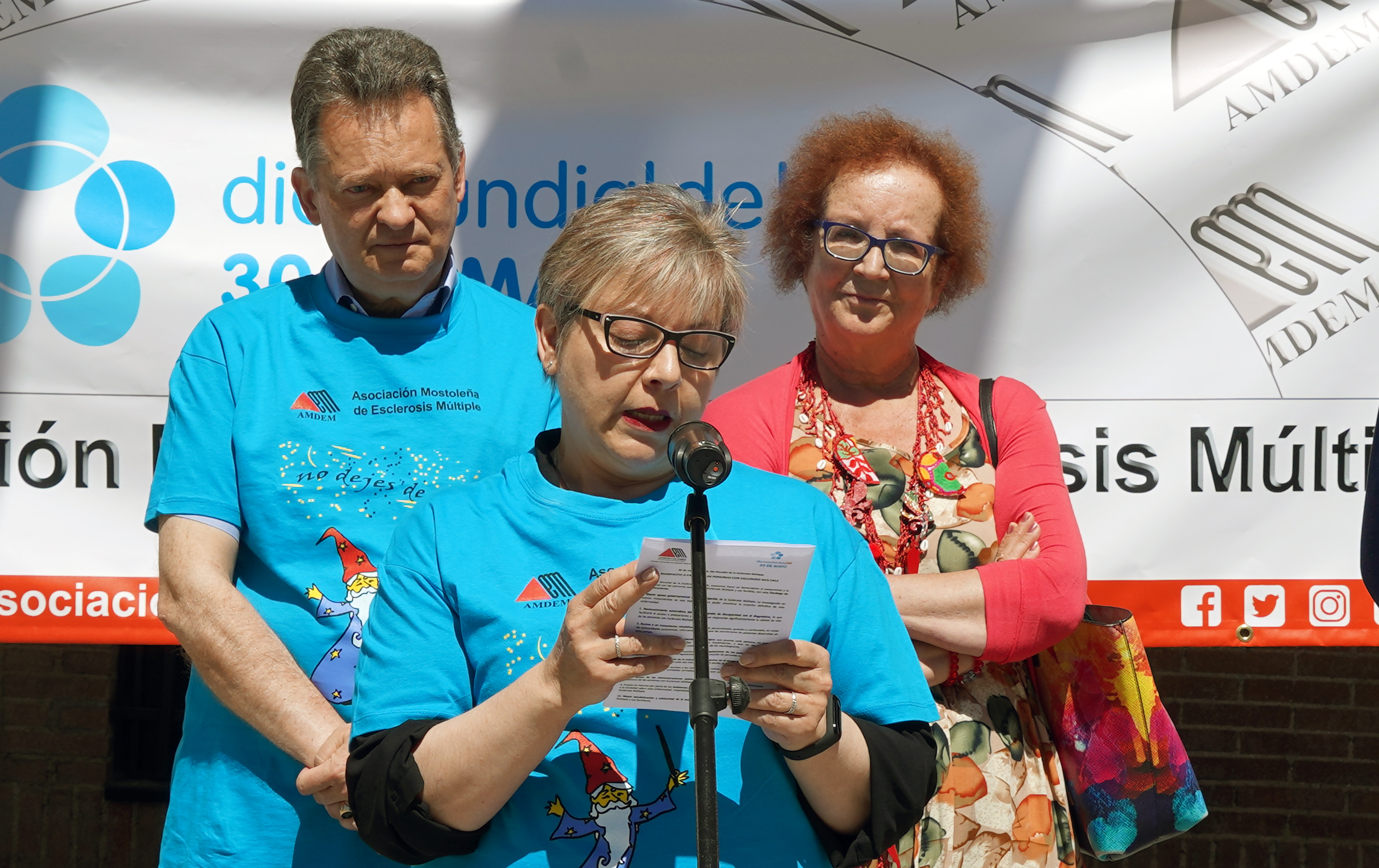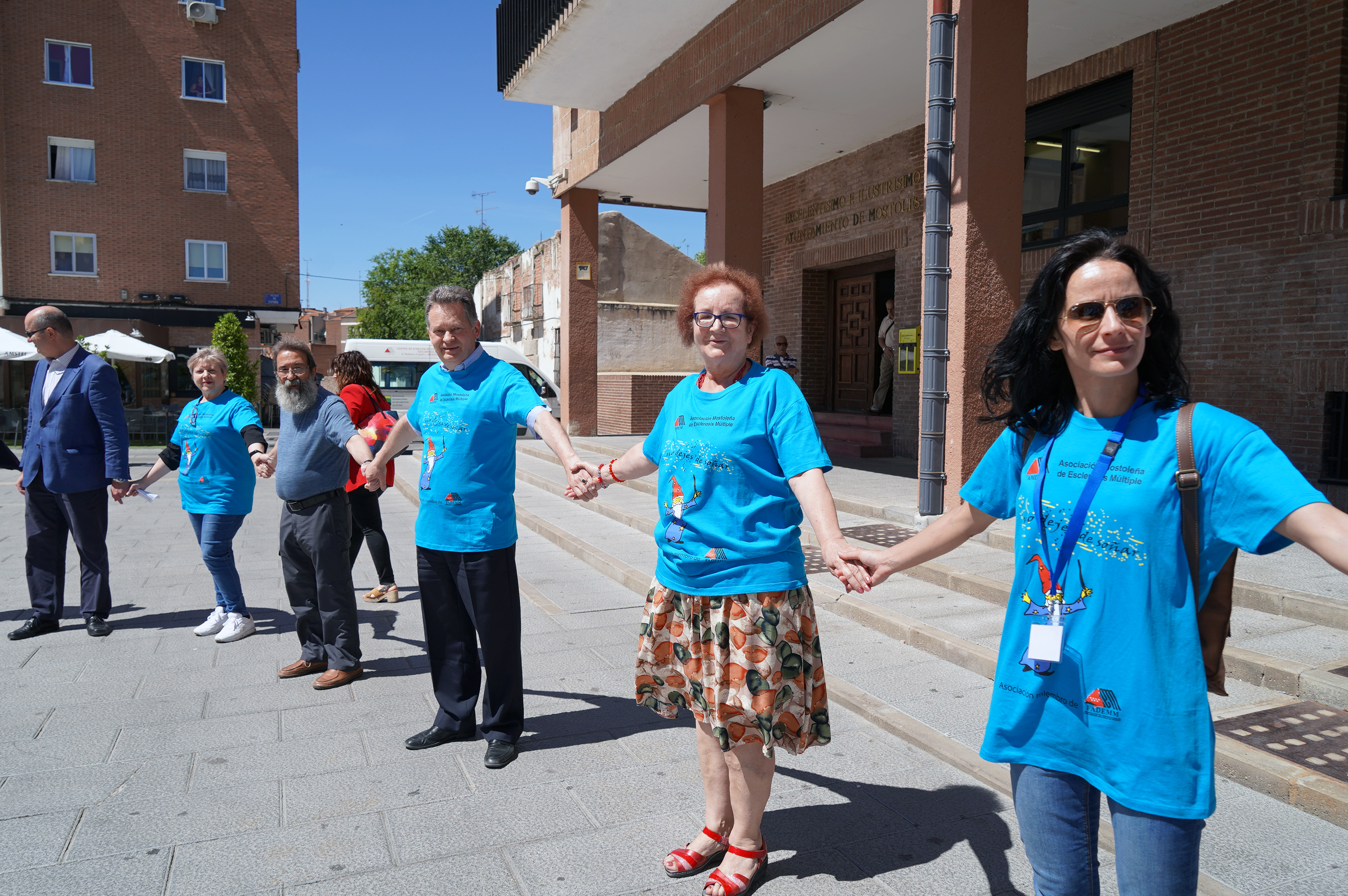 Imagen en alta resolución. Este enlace se abrirá mediante lightbox, puede haber un cambio de contextoCon motivo del Día Mundial de la Esclerosis Múltiple, que se celebra hoy 30 de mayo, la Asociación Mostoleña de Esclerosis Múltiple (AMDEM) ha celebrado un acto conmemorativo en la Plaza de España, frente al Ayuntamiento, con la asistencia de la concejala de Igualdad, Sanidad y Mayores en funciones, Ana María Rodrigo y otros concejales de la Corporación Municipal en funciones. La presentación, ante personas afectadas y sus familiares que han asistido a la celebración, ha corrido a cargo de Carlos Martín, presidente de AMDEM.