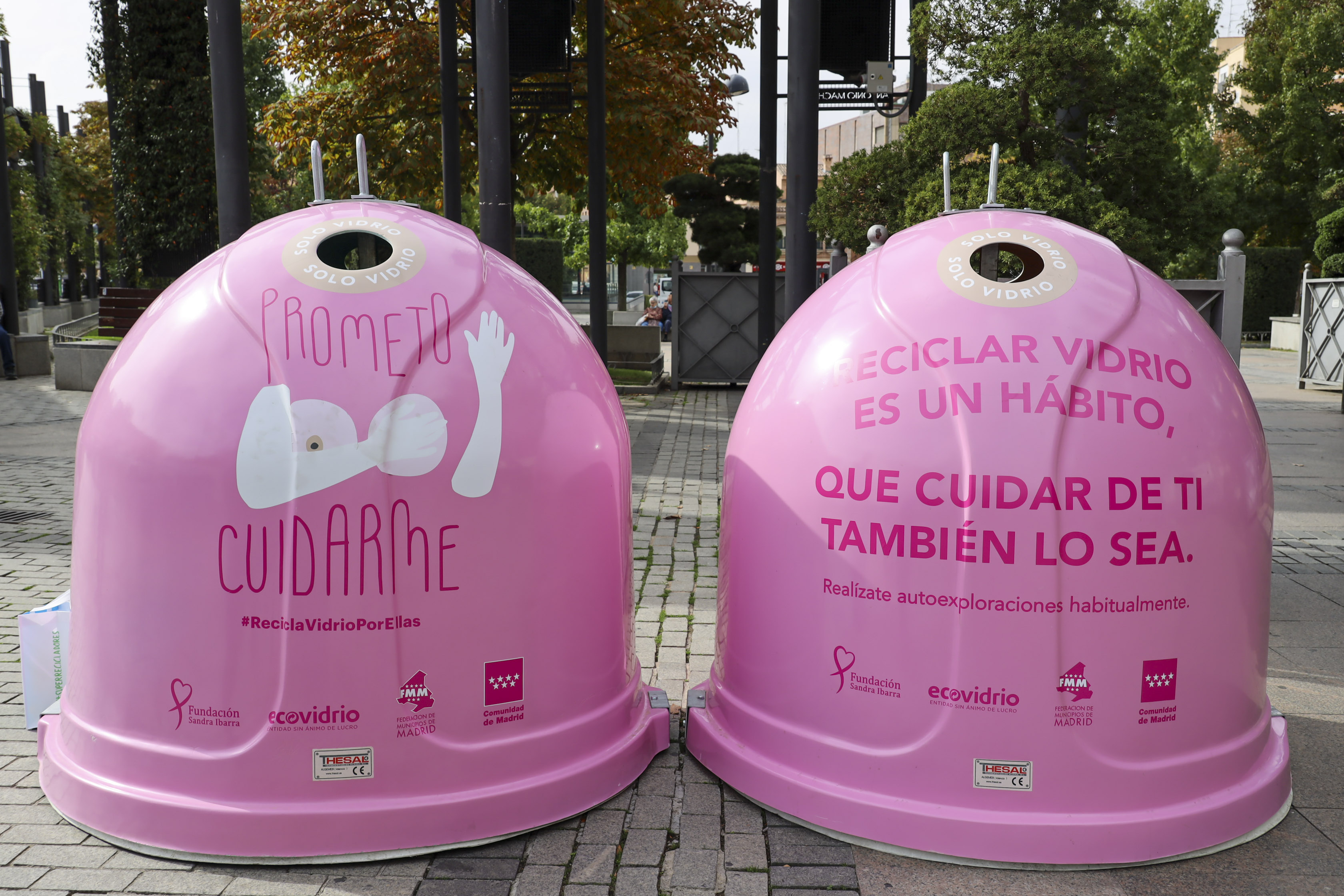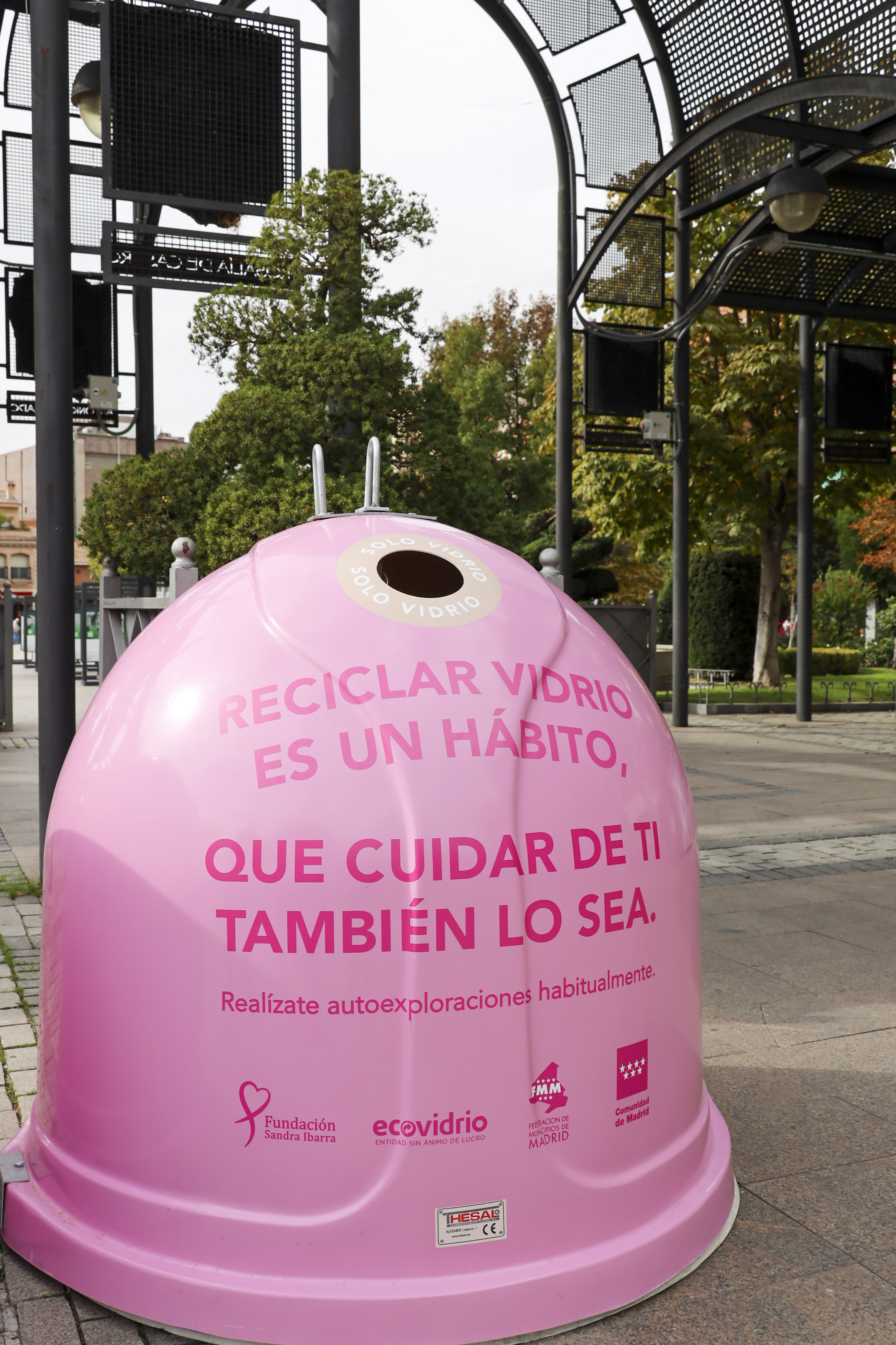 - Con motivo del Día Internacional contra el Cáncer de Mama, el Ayuntamiento de Móstoles ha instalado en la ciudad cuatro contenedores iglús rosas de reciclaje de vidrio con mensajes para promover la autoexploración como método de prevención del cáncer de mama, y, además, conseguir fondos para la investigación.