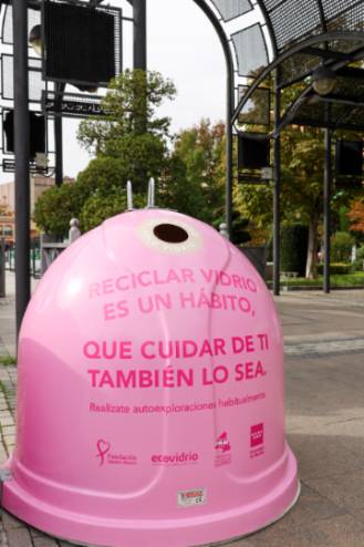 Con esta iniciativa buscan movilizar a los ciudadanos a reciclar envases de vidrio y, además, promover la autoexploración como método de prevención del cáncer de mama y recaudar fondos para la lucha contra la enfermedad.