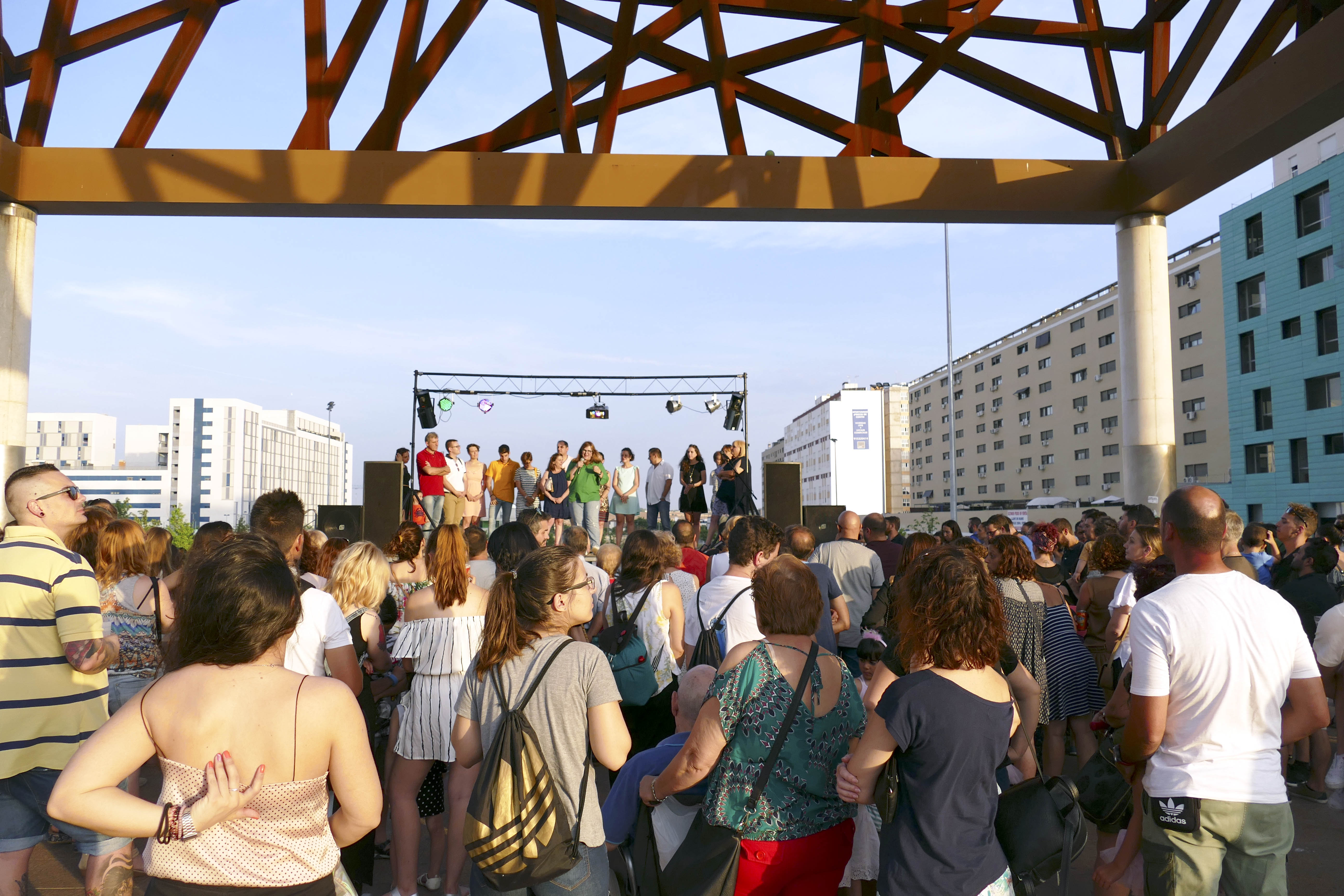 Imagen en alta resolución. Este enlace se abrirá mediante lightbox, puede haber un cambio de contextoLas fiestas vecinales del barrio Móstoles Sur (PAU-4), que tendrán lugar a lo largo de todo el fin de semana, se han inaugurado esta tarde del viernes 16 de junio, con un pregón ofrecido por la Federación de Comerciantes. Al acto asistieron el concejal de Deportes, Agustín Martín, la concejala de Régimen Interior, Susana García, el concejal de Urbanismo y Vivienda, Eduardo Gutiérrez, y la concejala de Juventud y Participación Ciudadana, Arancha Fernández.