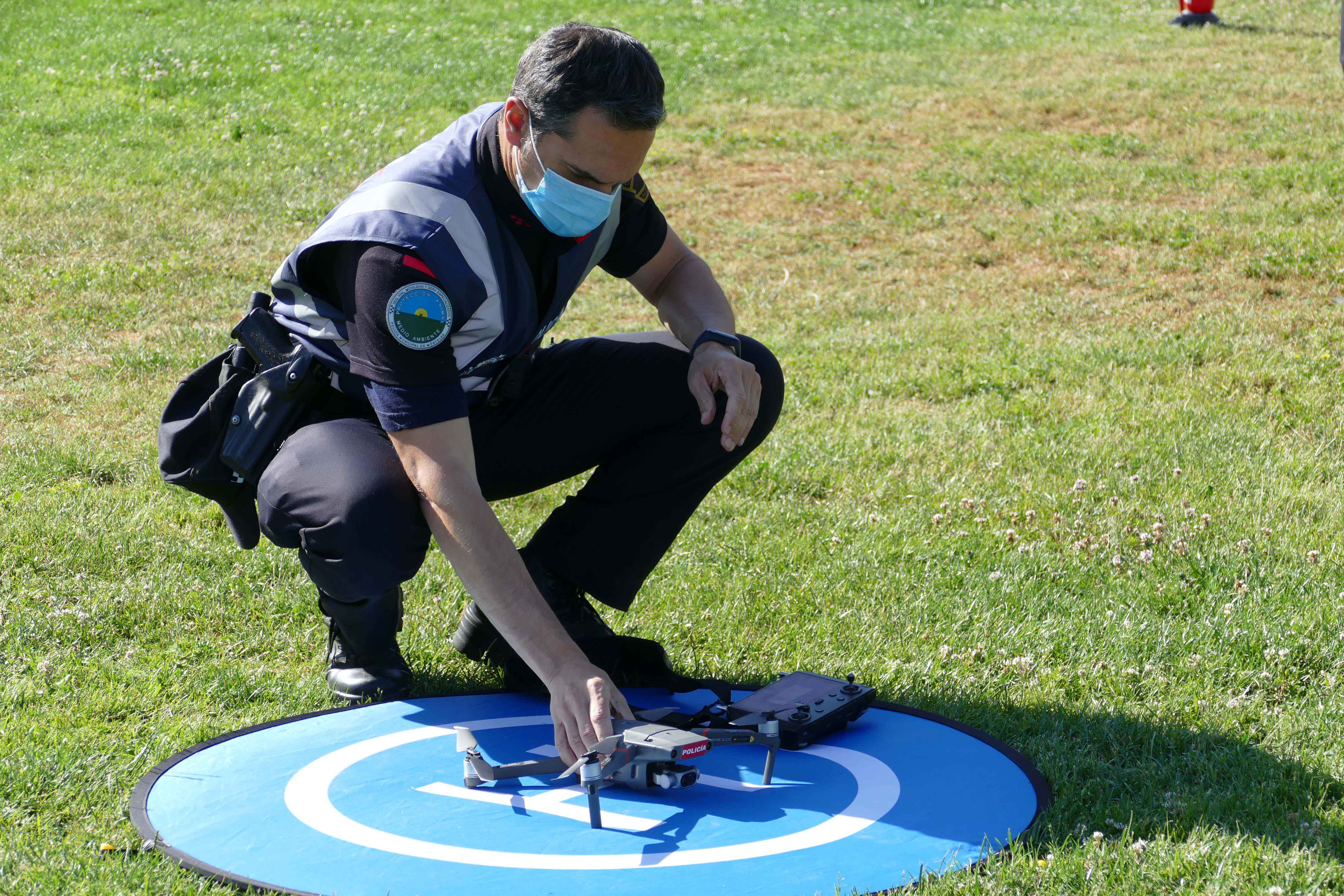 Imagen en alta resolución. Este enlace se abrirá mediante lightbox, puede haber un cambio de contextoEl Gobierno de Móstoles ha presentado esta mañana el primer dron de vigilancia con el que la Policía Municipal de Móstoles hará control y seguimiento de los delitos medioambientales que se cometan en el municipio desde la Unidad de Protección Animal y Protección del Medio Ambiente. Además, este dron dará apoyo a otras unidades de policía en funciones de vigilancia.