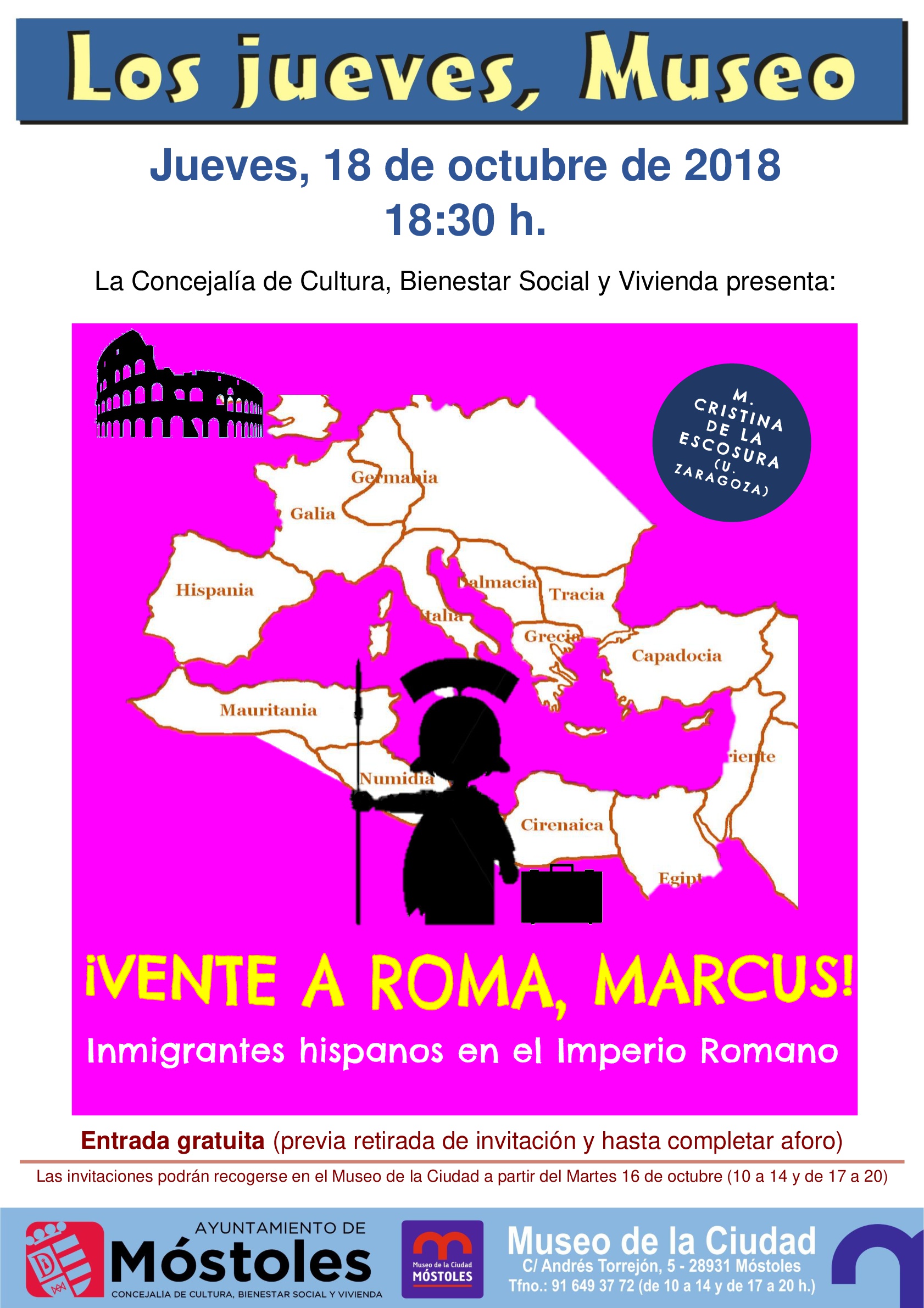 El Museo de la Ciudad acoge la conferencia “Vente a Roma, Marcus. Inmigrantes hispanos en el Imperio Romano”