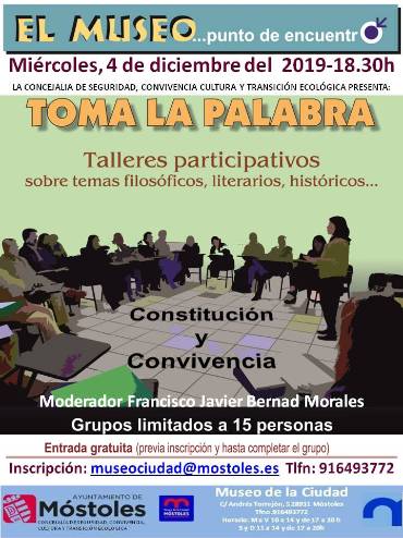El Museo de la Ciudad organiza una charla-debate sobre “Constitución y convivencia”, en el marco del ciclo de tertulias “Toma la palabra”