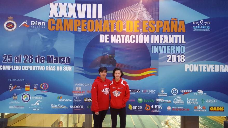 Imagen en alta resolución. Este enlace se abrirá mediante lightbox, puede haber un cambio de contextoCarla Rubio, nadadora infantil de la A. D. Natación Móstoles, ha participado en el XXXVIII Campeonato de España infantil de invierno de natación, que se ha celebrado en Pontevedra, junto a su entrenadora Mayka Moreno.