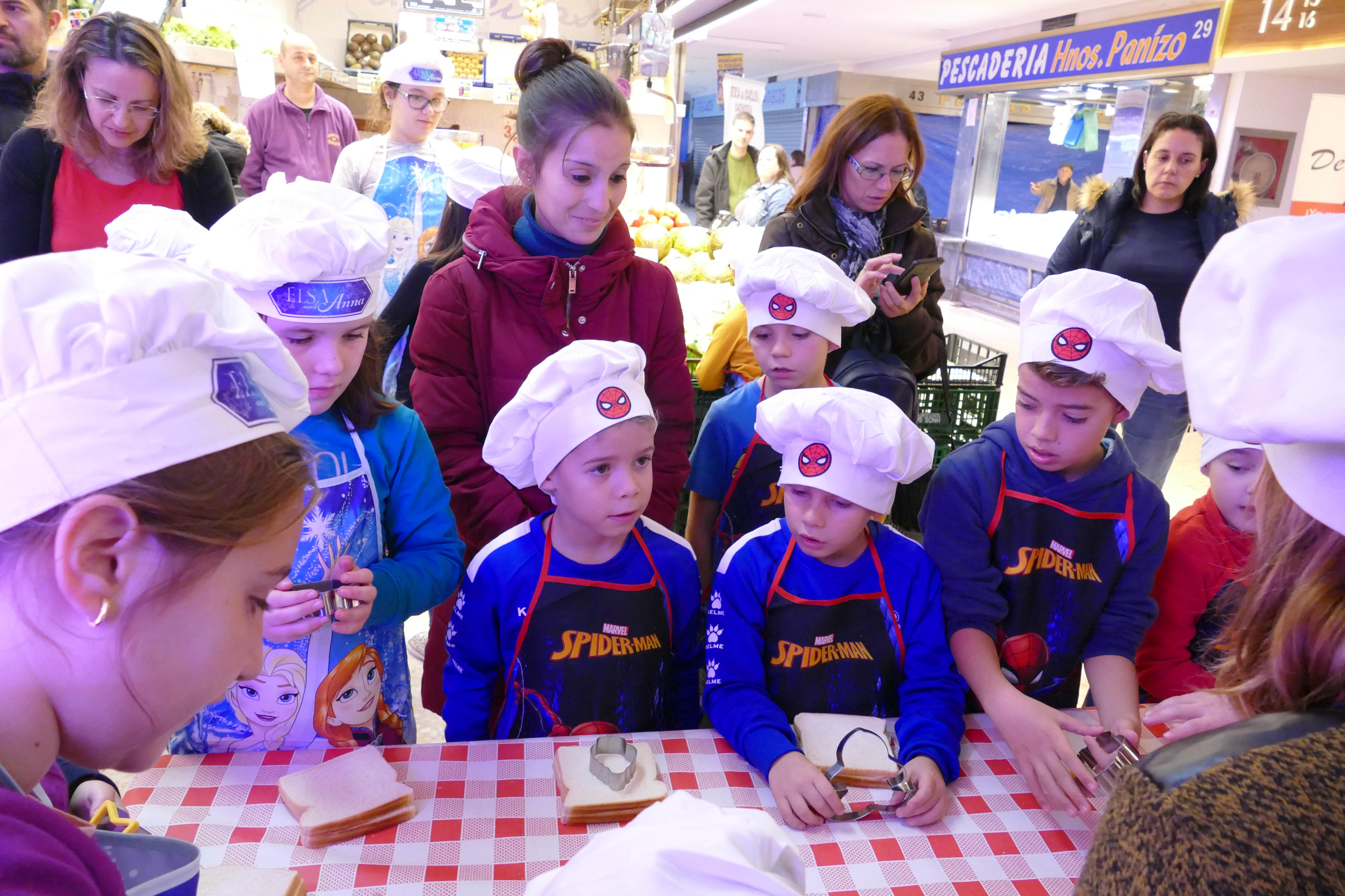 En cada taller se enseña a los niños y niñas participantes a comprar en los puestos del mercado y galería los productos del menú saludable. En el taller se vestirá a cada niña y niño para la ocasión como "Grandes Chefs", con delantal y gorro de cocina, se les invitará a confeccionar sus propios platos en frío "requeté-diver-sanos", a la vez que, a través de juegos y anécdotas en grupo, se les inculcará hábitos de consumo y alimentación saludables, así como el trabajo en equipo compartiendo entre todos los utensilios y materiales y desarrollando la creatividad individual de cada participante.