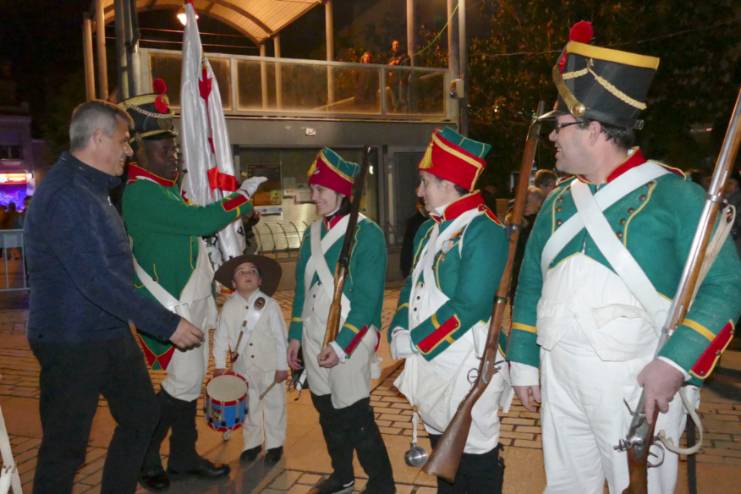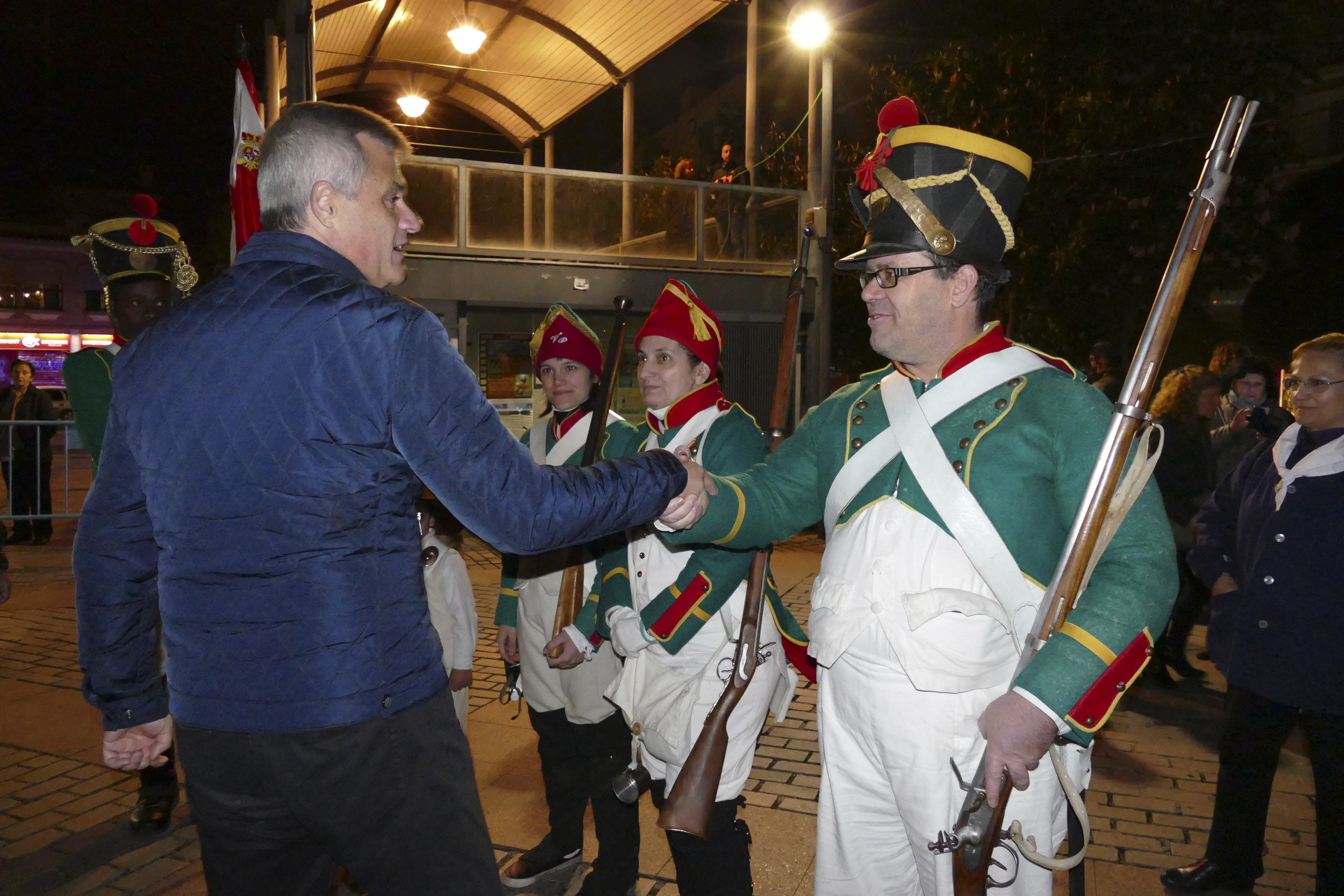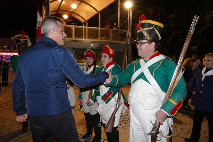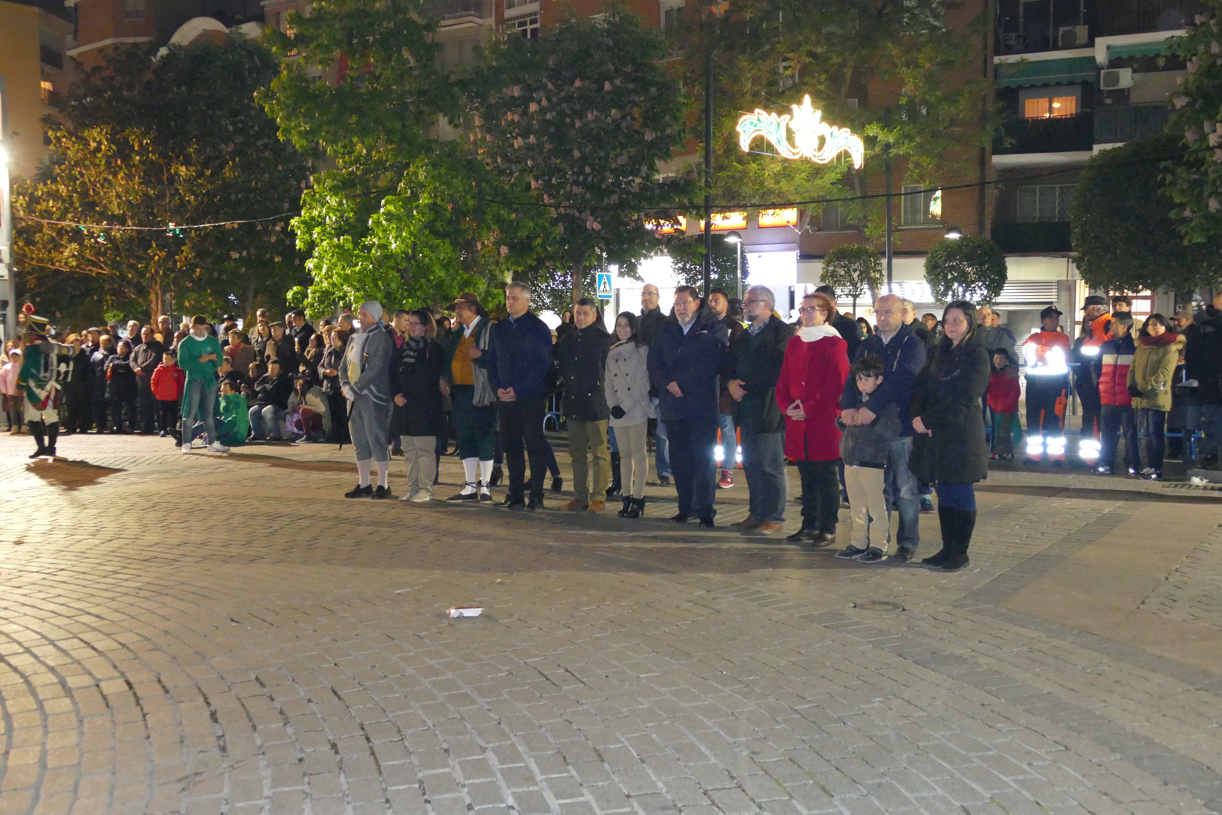 El desfile concluyó en el Monumento de Andrés Torrejón, donde el primer edil depositó el bastón de mando como homenaje y se procedió a escuchar el himno de la ciudad.