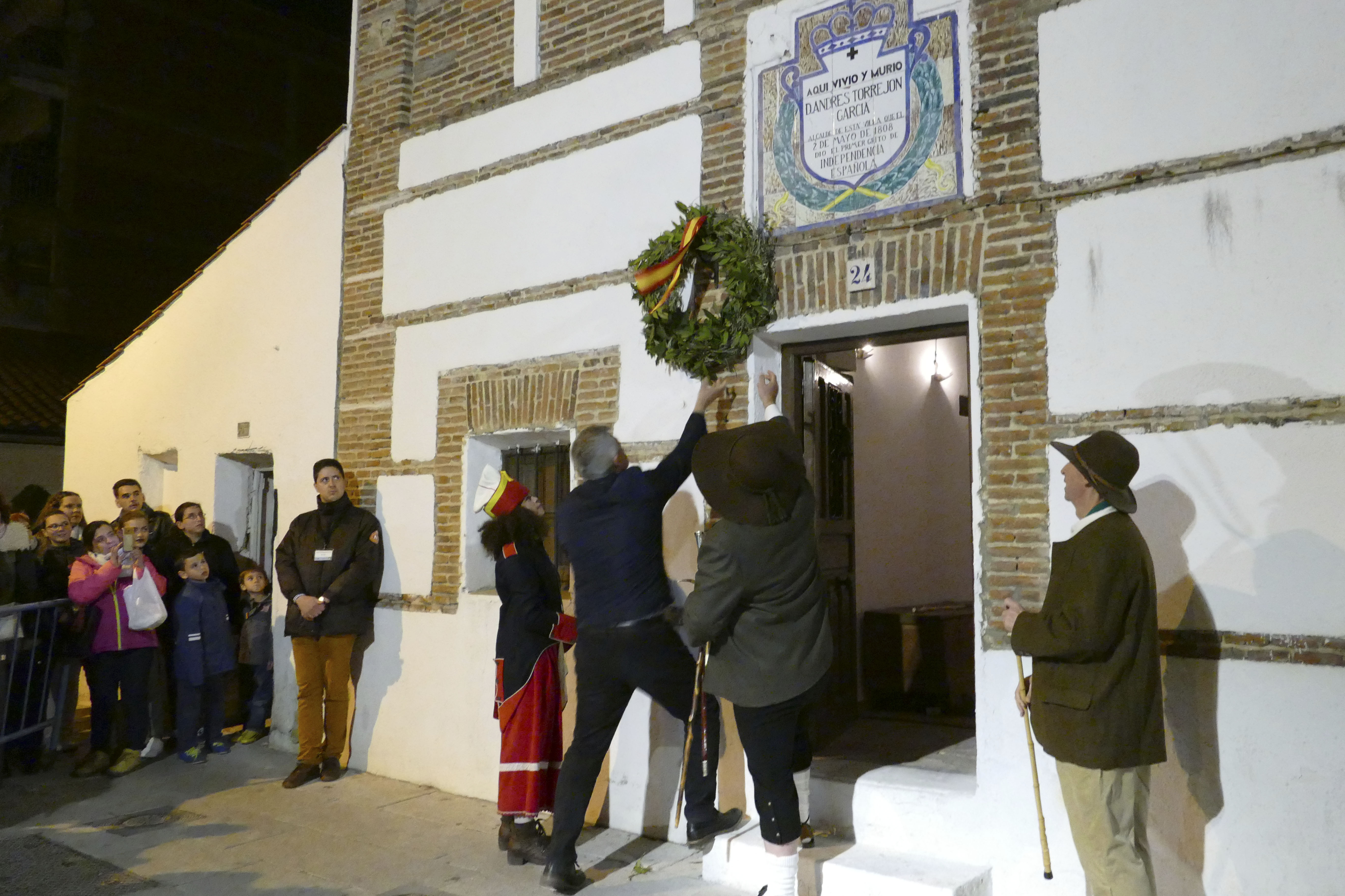 Frente a la casa de Andrés Torrejón, el alcalde de Móstoles, David Lucas, emplazó una corona de laurel, realizando un guiño a su labor.