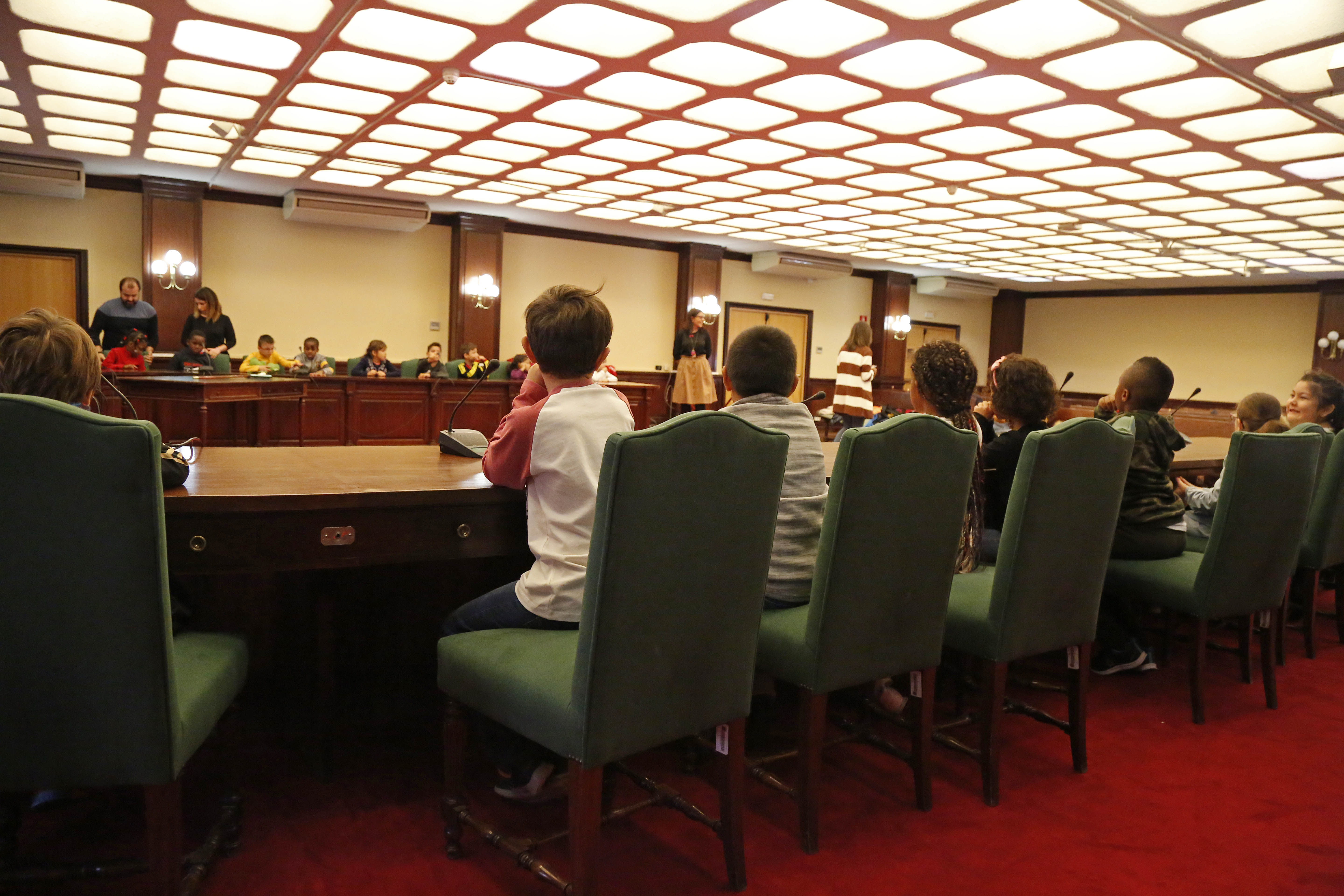 Imagen en alta resolución. Este enlace se abrirá mediante lightbox, puede haber un cambio de contextoLa alcaldesa de Móstoles, acompañada por la concejala de Educación y Juventud, Natividad Gómez, y la concejala de Presidencia, Rebeca Prieto, ha recibido esta mañana en el salón de plenos del Ayuntamiento a una treintena de alumnos del CEIP Pío Baroja del municipio. En el marco del proyecto del centro, "Conozco mi localidad", los jóvenes estudiantes de 2º primaria, acompañados por varios de sus profesoras, tuvieron la oportunidad de conocer personalmente a la primera edil quien, a su vez, les explicó las funciones que desempeña como alcaldesa.