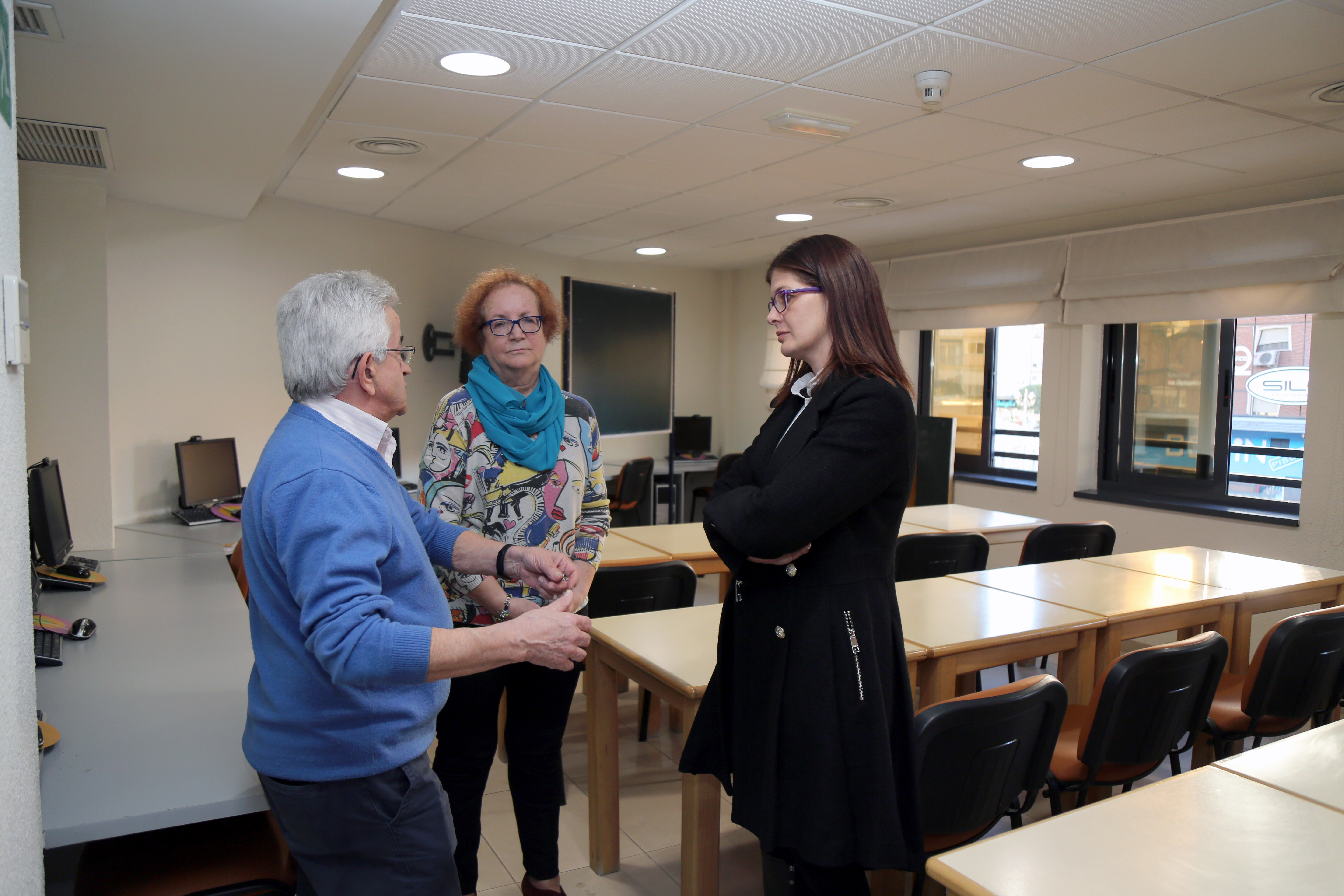 Imagen en alta resolución. Este enlace se abrirá mediante lightbox, puede haber un cambio de contextoLa alcaldesa de Móstoles, Noelia Posse, acompañada de la concejala de Igualdad, Sanidad y Mayores, Ana María Rodrigo ha visitado el Centro de Mayores Juan XXIII, donde ha asistido a una sesión del taller de yoga que tiene lugar dentro de las actividades que se imparten en dicho Centro. Asimismo, ha departido con los alumnos y alumnas del aula de informática.