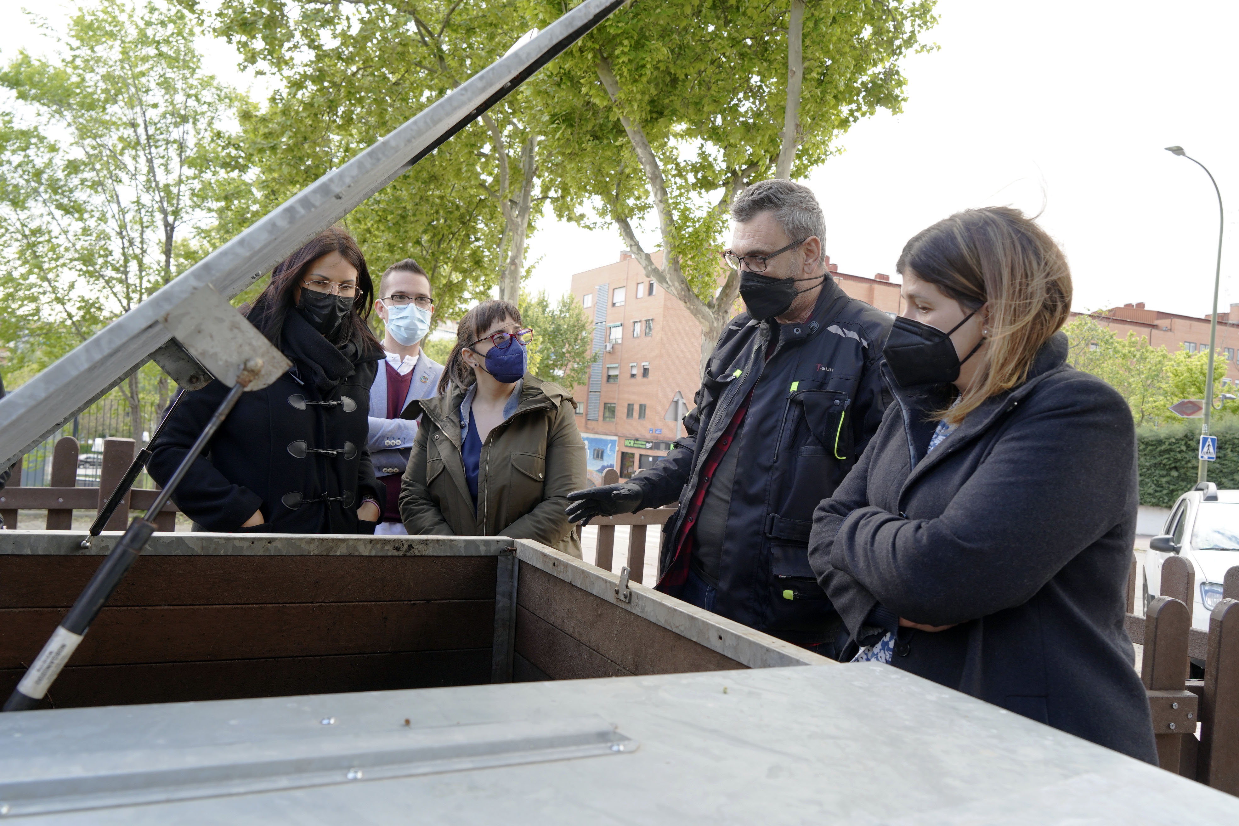 Noelia Posse visita una de las cinco composteras de Móstoles