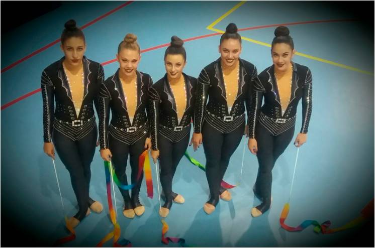 En la categoría Infantil las gimnastas Alba P, Sara E, Chantal R, Ainhoa M y María H, se subieron a lo más alto del pódium recibiendo la medalla de oro.