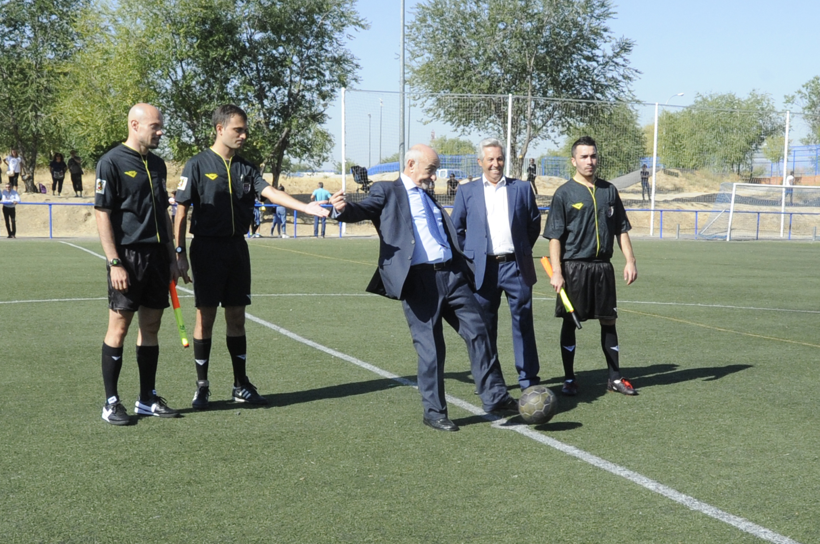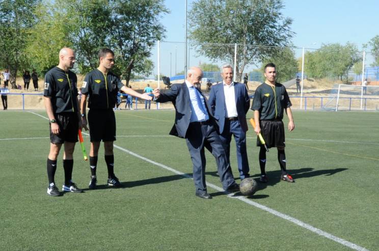 Imagen en alta resolución. Este enlace se abrirá mediante lightbox, puede haber un cambio de contextoEl pasado domingo se celebró en el Polideportivo Andres Torrejón un encuentro de fútbol para homenajear al ex presidente del Club Deportivo Móstoles, Gregorio Aviñó. El partido reunió en las gradas a antiguos jugadores, así como muchos aficionados y personas ligadas a este pionero club mostoleño. En representación del Gobierno Municipal estuvieron presentes Agustín Martín, concejal de Deportes y Arancha Fernández, concejala de Juventud y Participación Ciudadana.