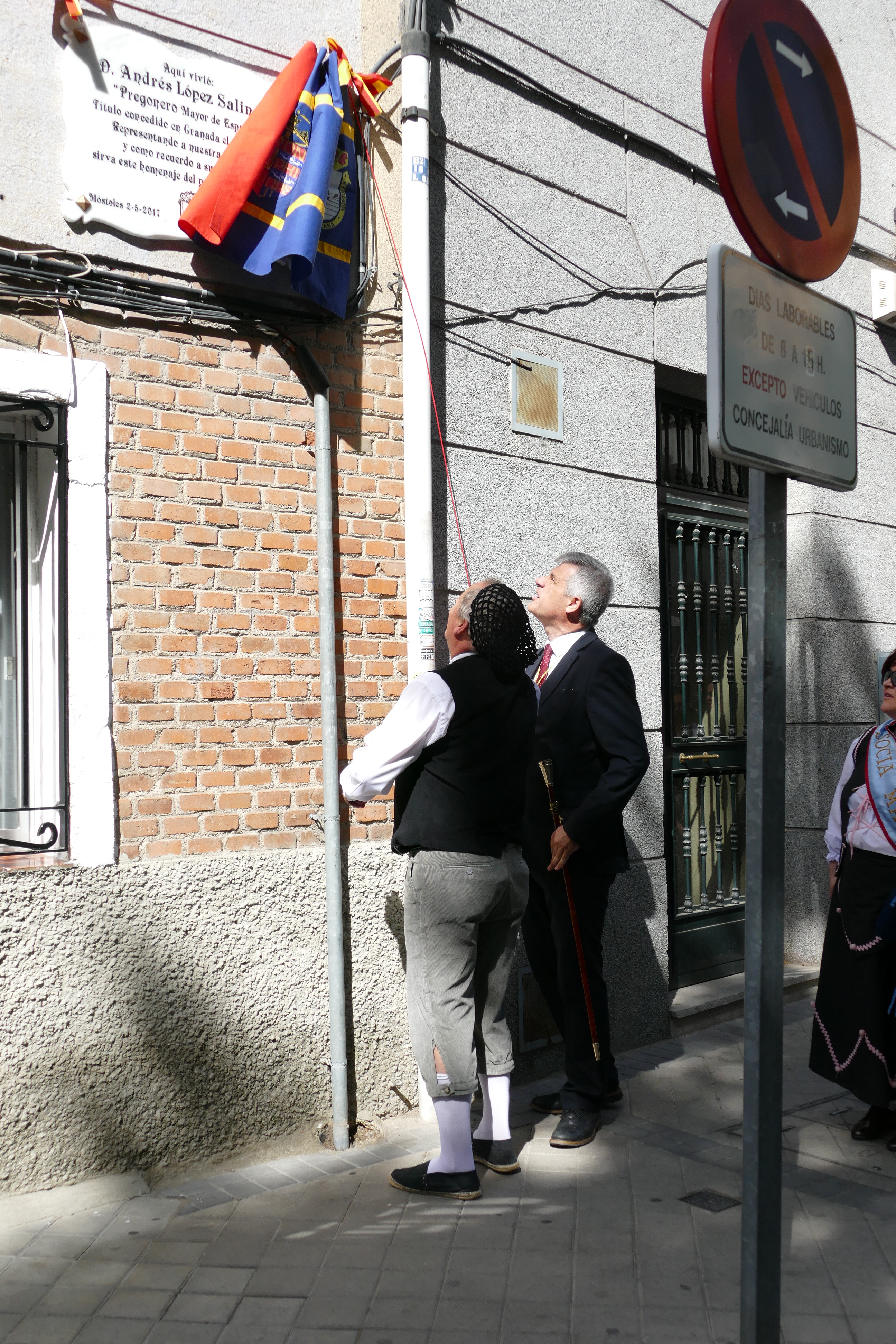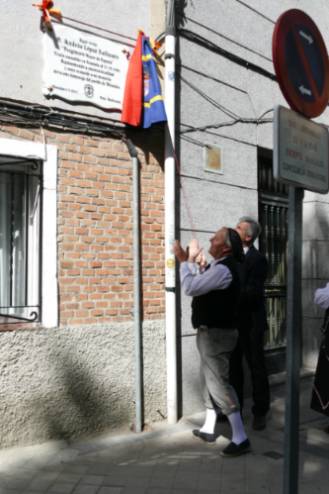 Después de la imposición de la corona de laurel en la casa donde vivió Andrés Torrejón, el Alcalde, acompañado por el Equipo de Gobierno y la comitiva se han trasladado a la calle Independencia, con esquina a la Avenida de la Constitución, donde vivió Andrés López, sacristán y pregonero mayor de España. Allí David Lucas, ha procedido a descubrir una placa que la peña Barbacana ha dedicado al propio Andrés López. Seguidamente, la peña Barbacana ha invitado a los mostoleños a la degustación de bollitos y moscatel.