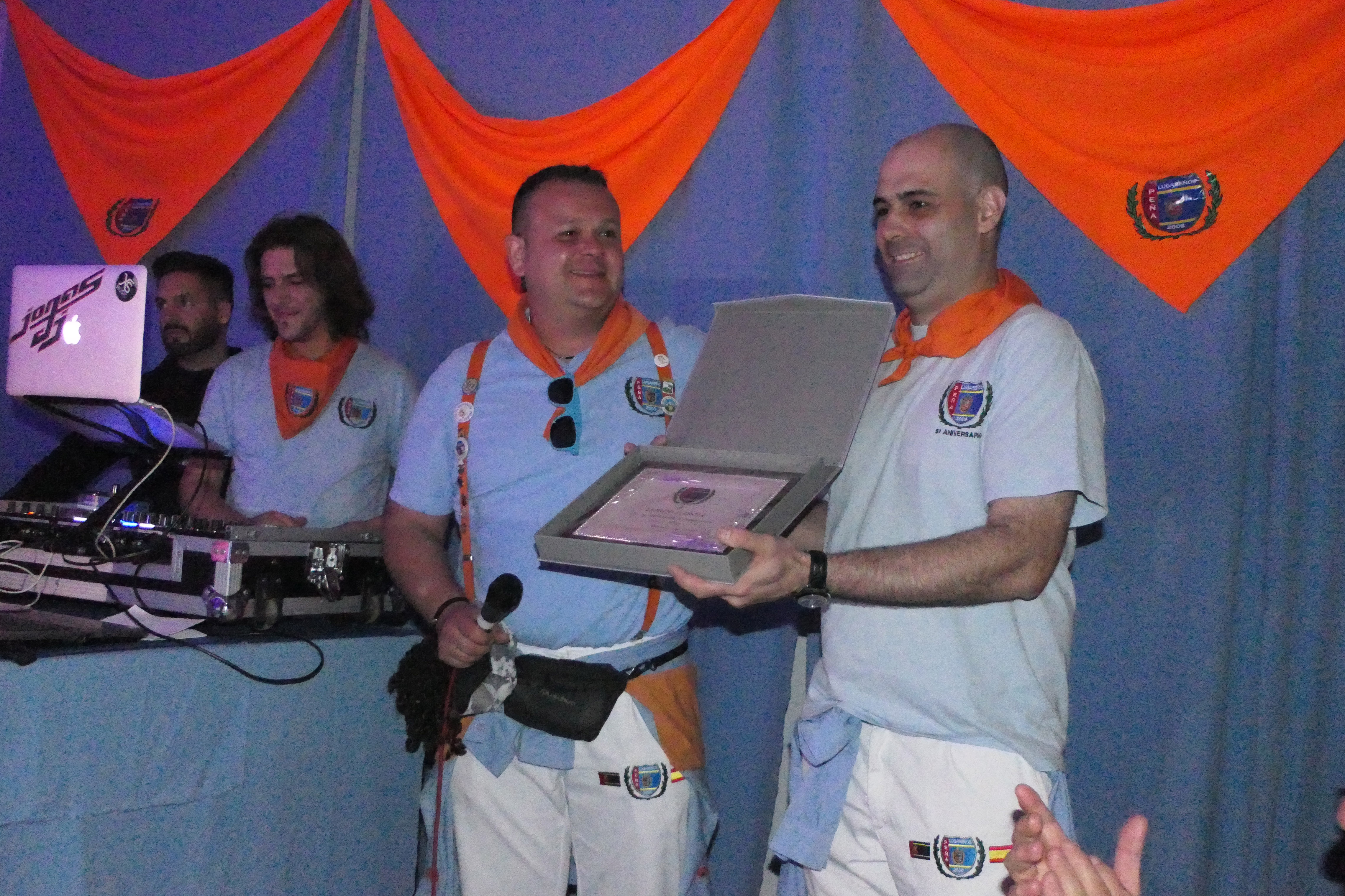 Numerosos peñeros, familiares y amigos acudieron a la carpa de Los Lugareños para compartir este acto en el que se rindió homenaje a Rafael González Cruceta, recientemente fallecido. Cruceta fue figura referente de la cultura de las peñas de la ciudad, y socio fundador de las peñas "Barbacana", los "Corbatos" y la de los propios "Lugareños".