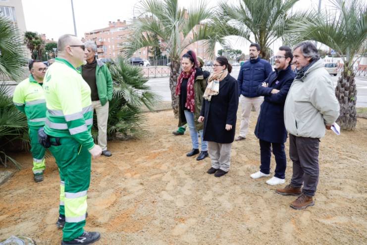 El contrato, que busca generar oportunidades de empleo para personas con diversidad funcional, tendrá una duración de dos años e incluye un técnico, dos técnicos auxiliares y cuatro auxiliares a los que se sumará uno más en las épocas de verano. Para responder a las necesidades del personal, contarán a tiempo parcial con el apoyo de un psicólogo y un trabajador social. La Alcaldesa Noelia Posse, acompañada del Concejal de Mejora y Mantenimiento de los Espacios Públicos, David Muñoz, la Concejala de Empleo y Nuevas Tecnologías, Rebeca Prieto, y la Portavoz de Podemos, Mónica Monterreal, han visitado hoy una de las zonas en las que están ya actuando.