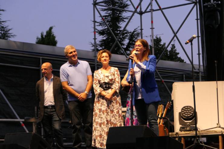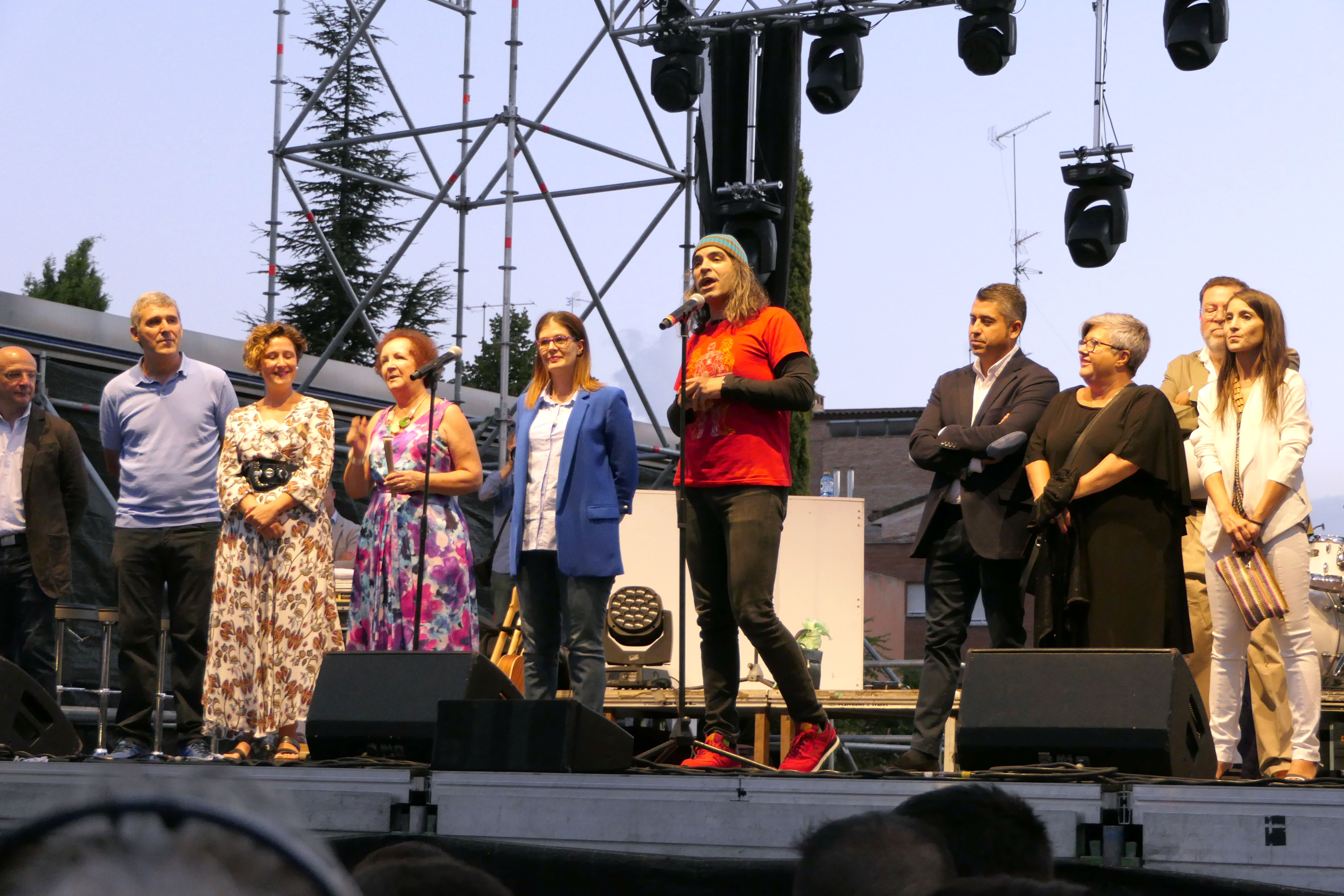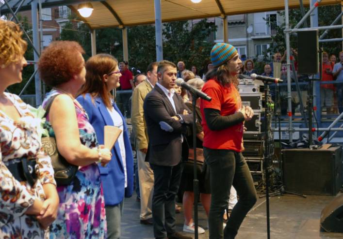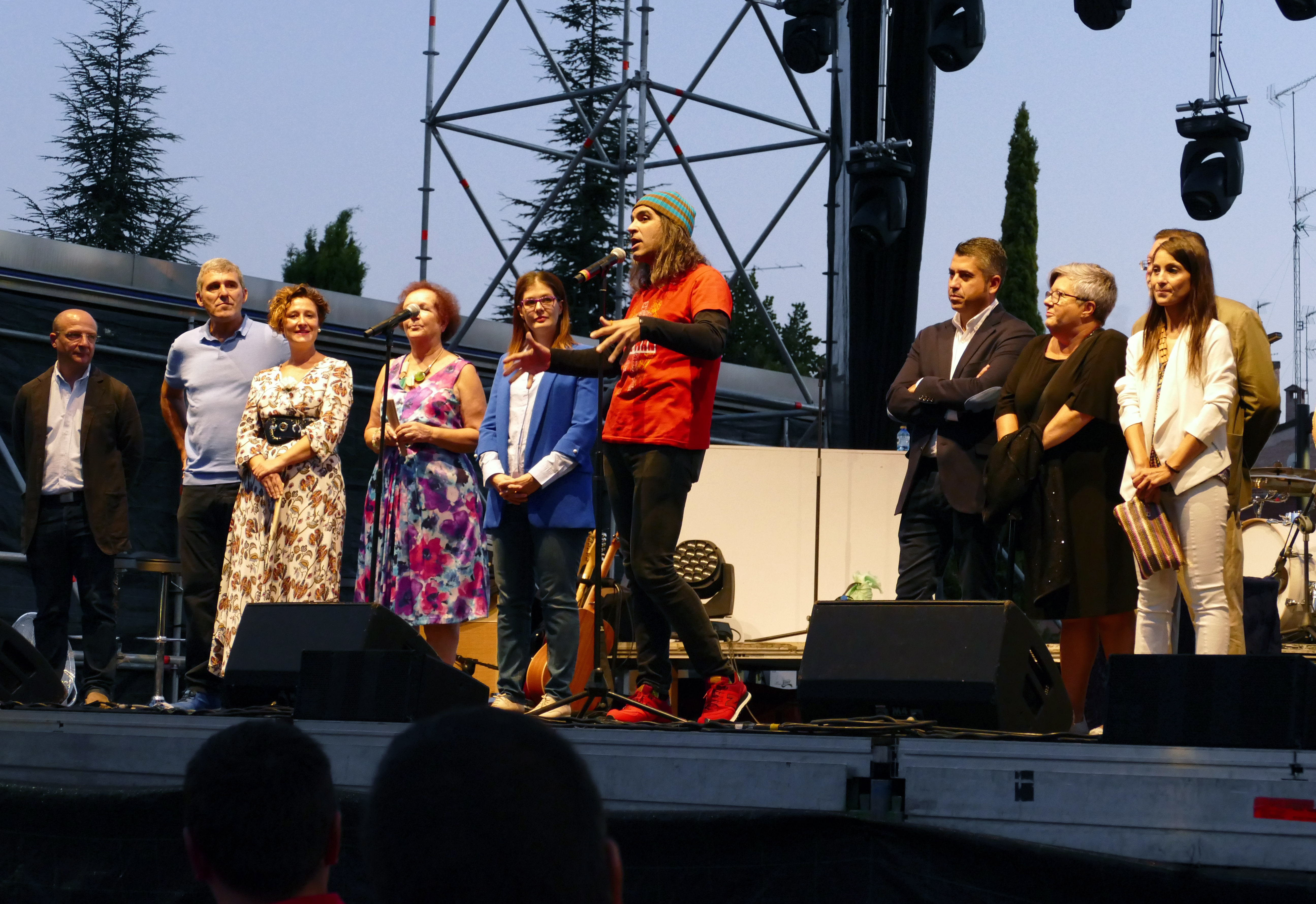 El pregonero de las Fiestas, Chema Alonso, junto a la alcaldesa de Móstoles, Noelia Posse, y acompañados de miembros del Equipo de Gobierno y de la Corporación Municipal, así como de representantes de las peñas, asociaciones de vecinos, colectivos y otras entidades de la ciudad, vecinas y vecinos, se han dado cita en la Plaza del Pradillo.