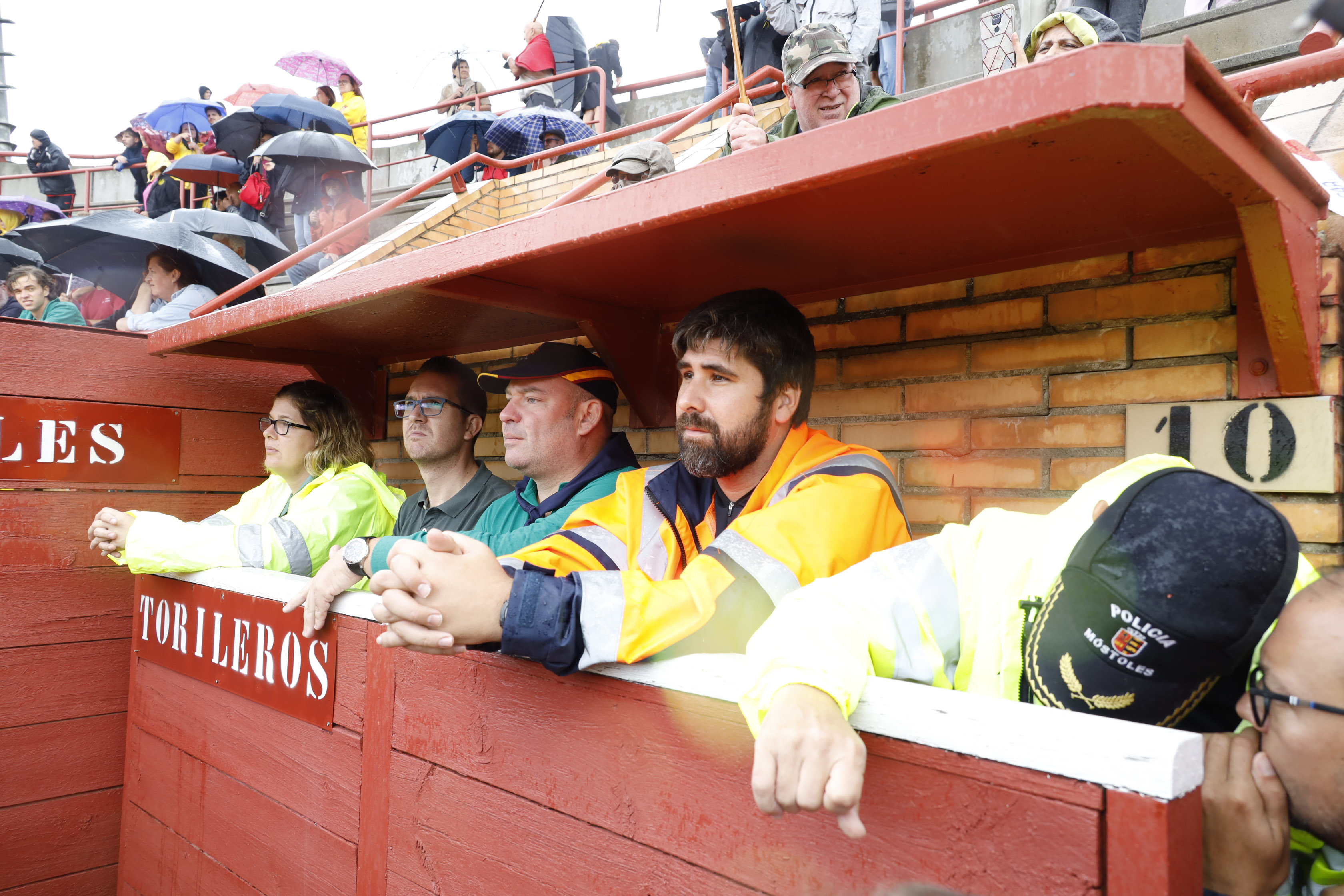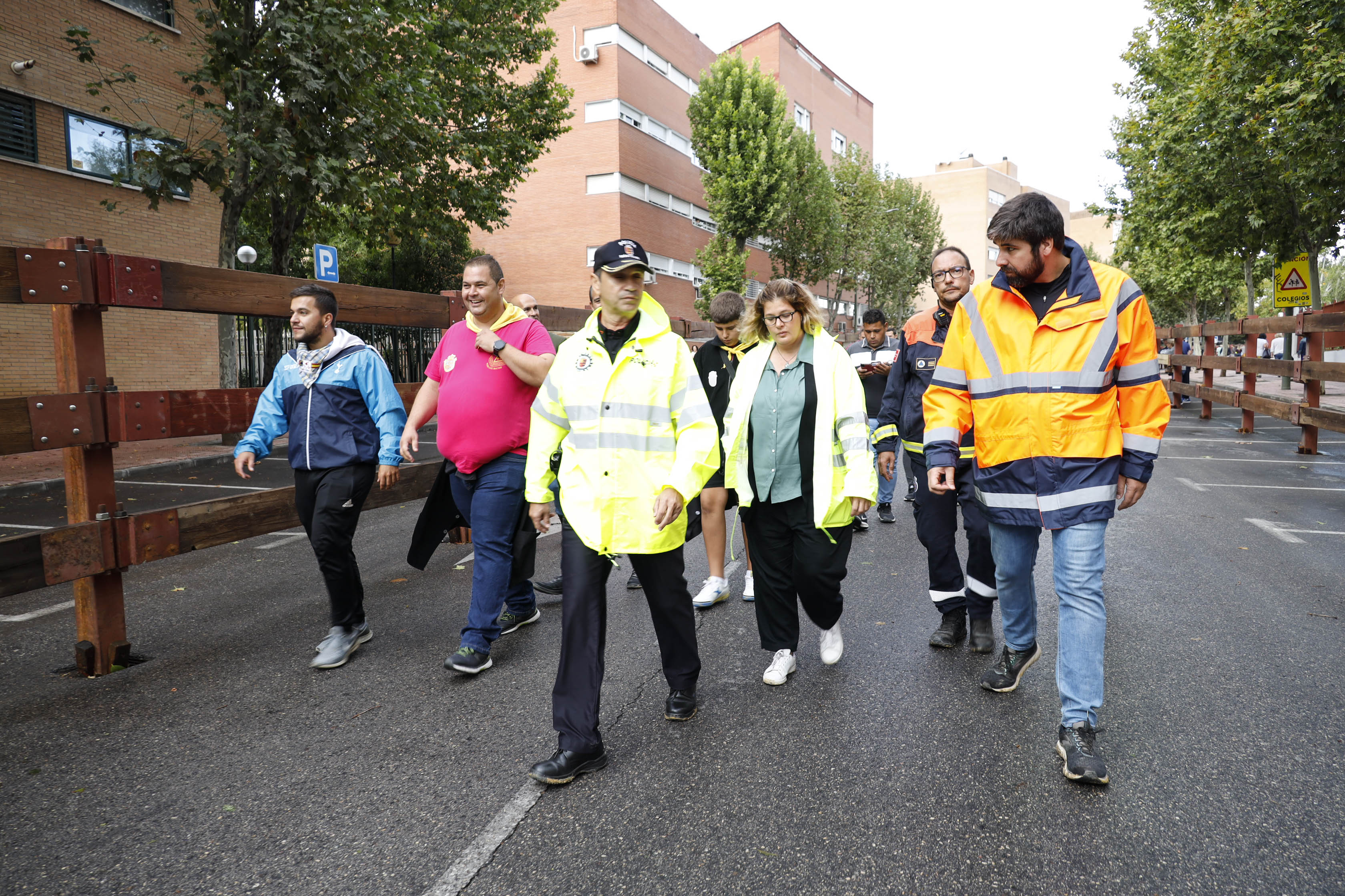 La Alcaldesa de Móstoles, Noelia Posse, el Concejal de Seguridad, Álex Martín y el Concejal responsable del Área de Festejos, David Muñoz, han comprobado con los técnicos del Ayuntamiento el dispositivo antes de la suelta de reses.