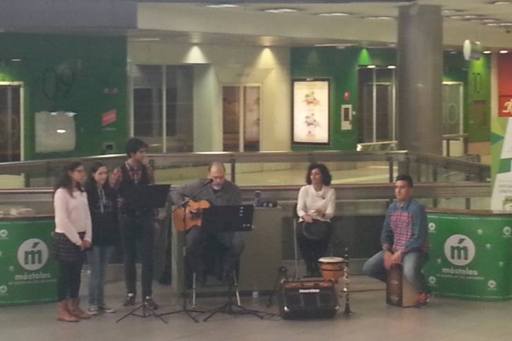 Turismo en intercambiadoresImagen en alta resolución. Este enlace se abrirá mediante lightbox, puede haber un cambio de contextoTurismo en intercambiadores El pasado sábado 22 de noviembre, Día de la Música, el Ayuntamiento de Móstoles inauguró en el intercambiador de Plaza Elíptica su participación en el programa de "Promoción turística en los intercambiadores" promocionando la red verde de la ciudad y las rutas que se desarrollan en nuestro municipio. Un grupo formado por profesores y alumnos del I.E.S. Clara Campoamor mostoleño, dirigidos por Pedro Sáez, actuó en el citado recinto en representación del municipio.