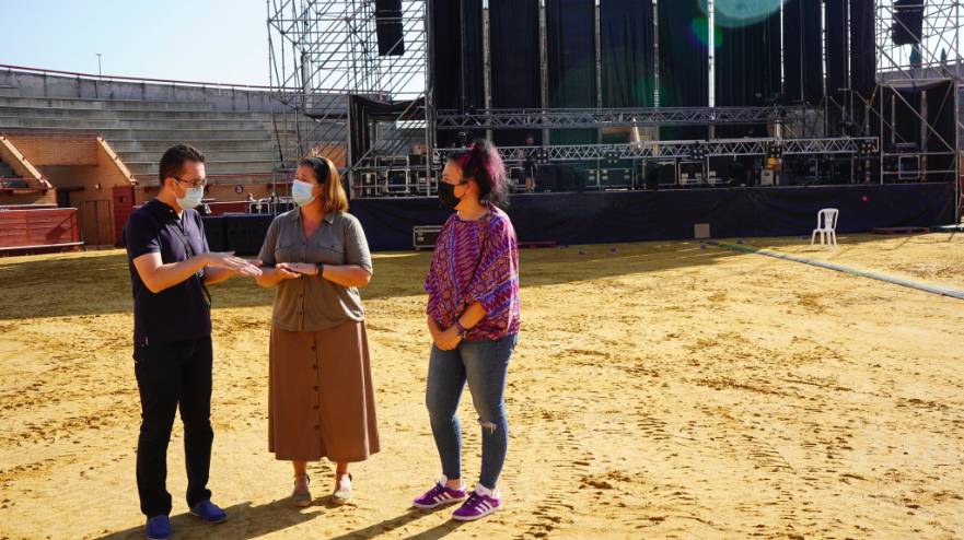 - La Alcaldesa de Móstoles, Noelia Posse, ha visitado el recinto ferial y la Plaza de Toros, para comprobar que los trabajos de instalación se realizan correctamente.