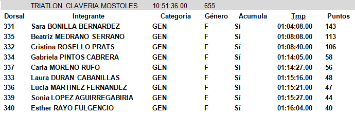 En categoría femenina las chicas obtuvieron un 10º puesto gracias a la aportación de en este caso 9 de las 10 participantes que consiguieron puntuar: